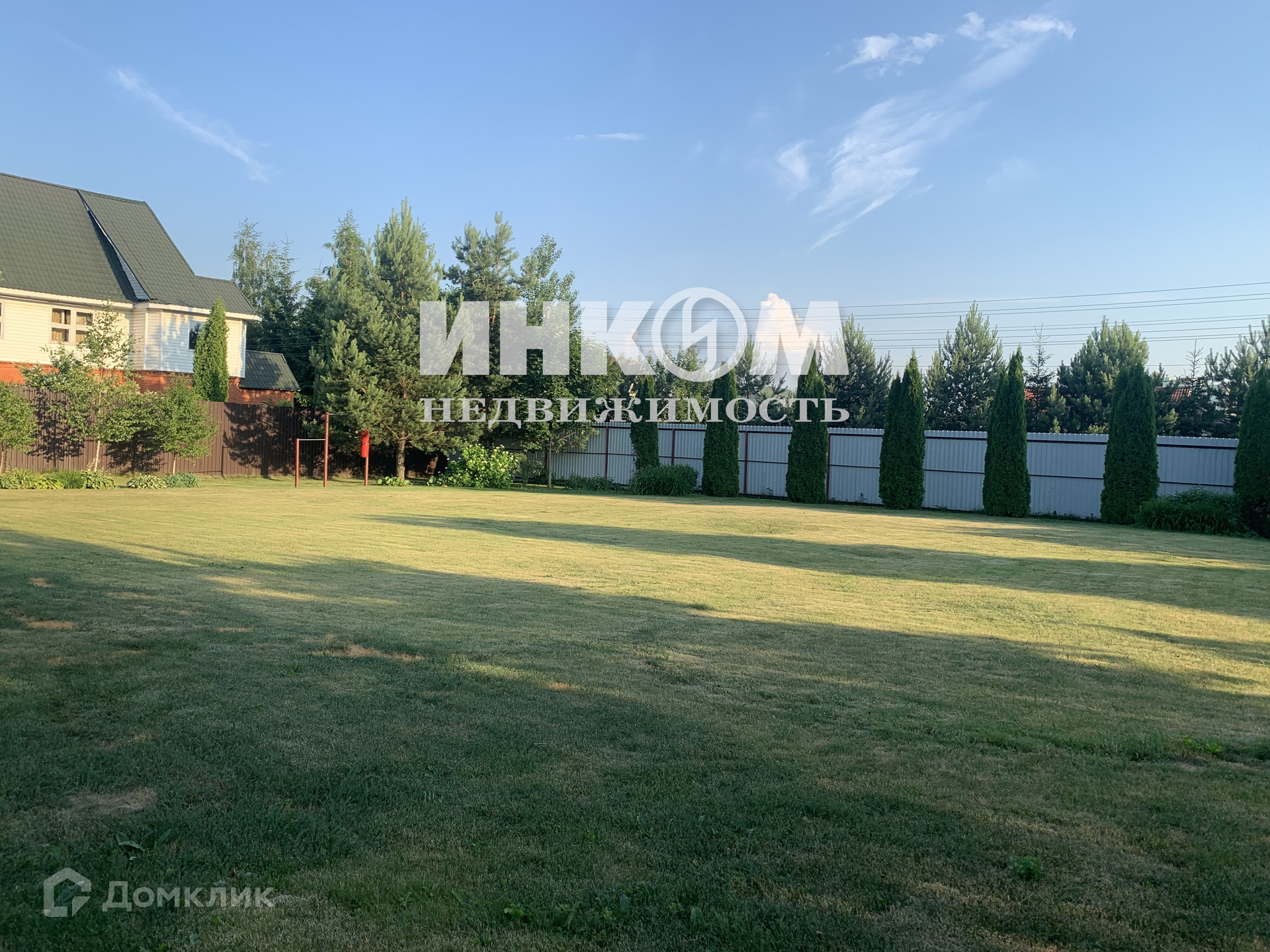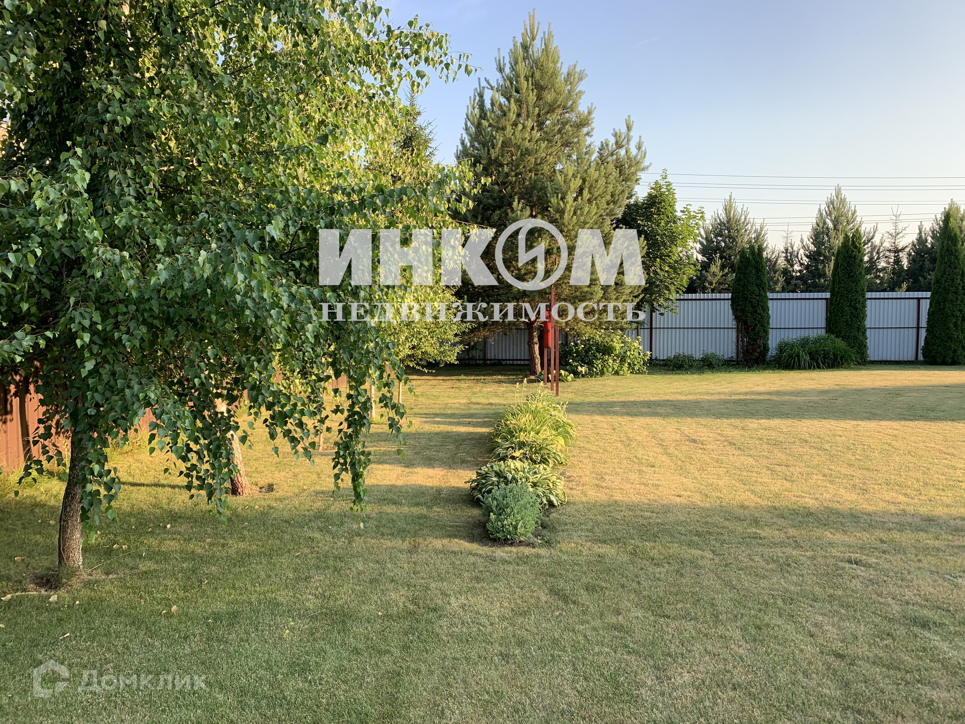 Приватный участок за высоким забором. Ухожен с большой любовью: ровный, мягкий, словно бархатный ковер, газон. По периметру участка посажены туи, кустарники, сосна, клен, каштаны, сирень.