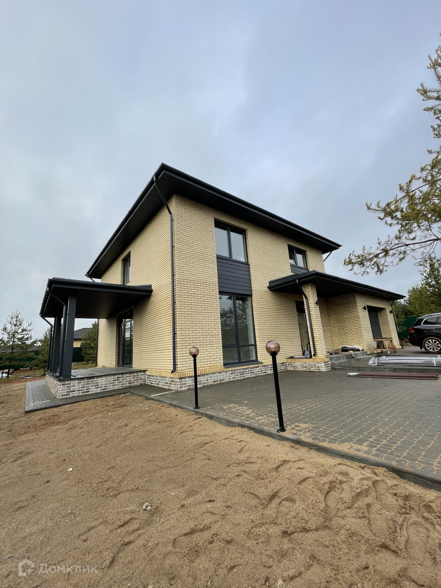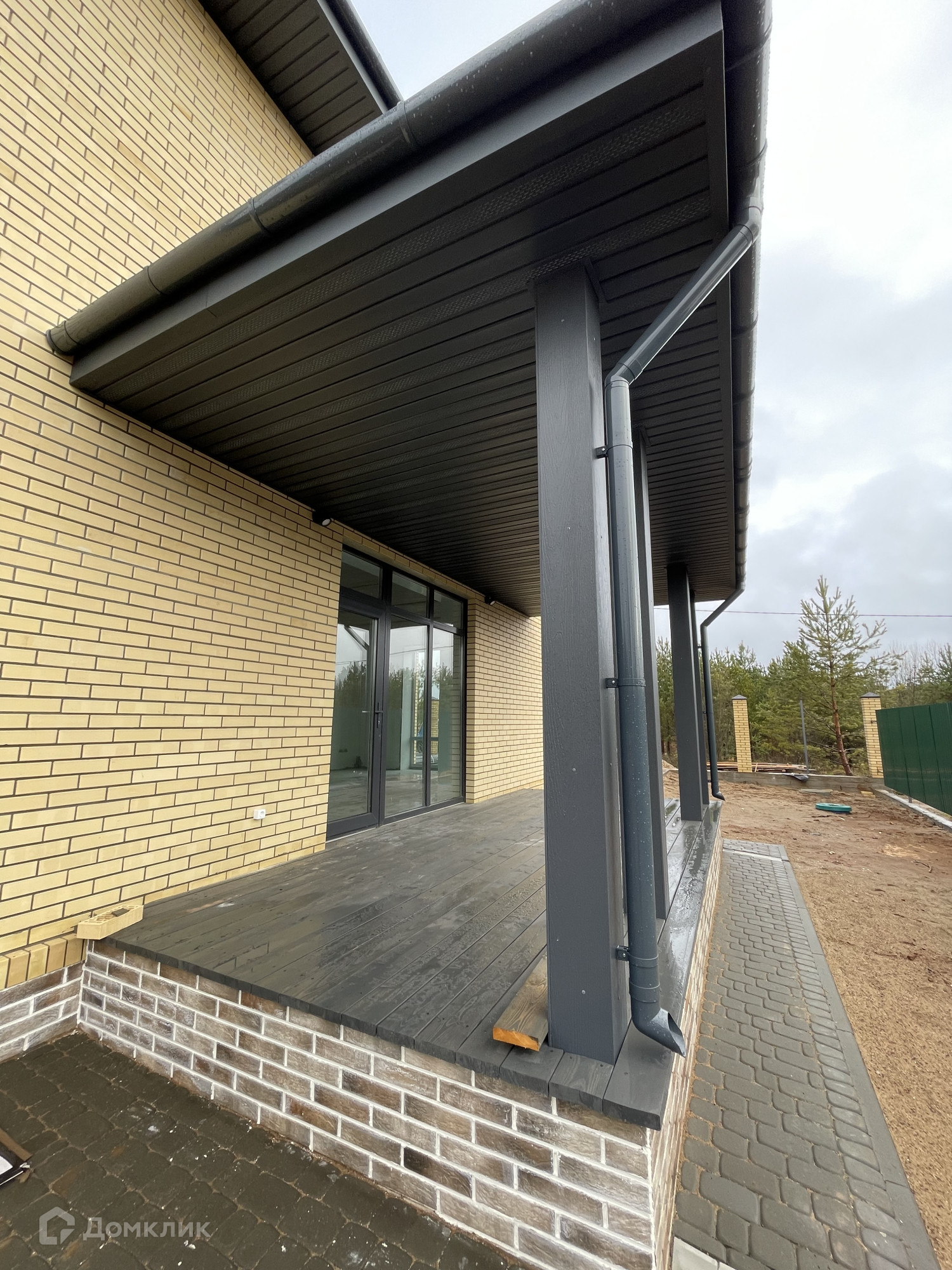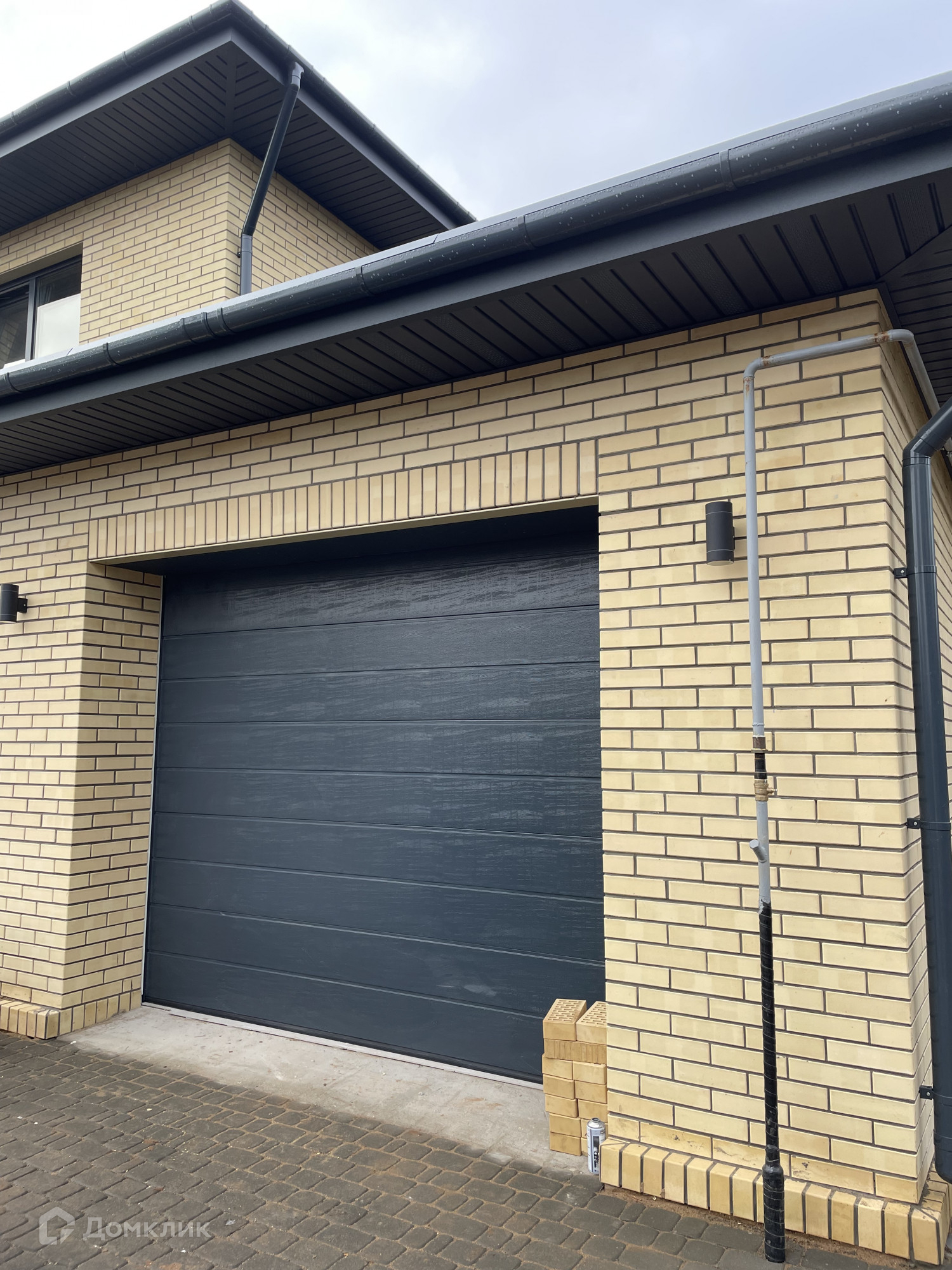 -Входная группа от ворот и до дома, и территория вокруг дома выложена брусчаткой на бетонной основе.