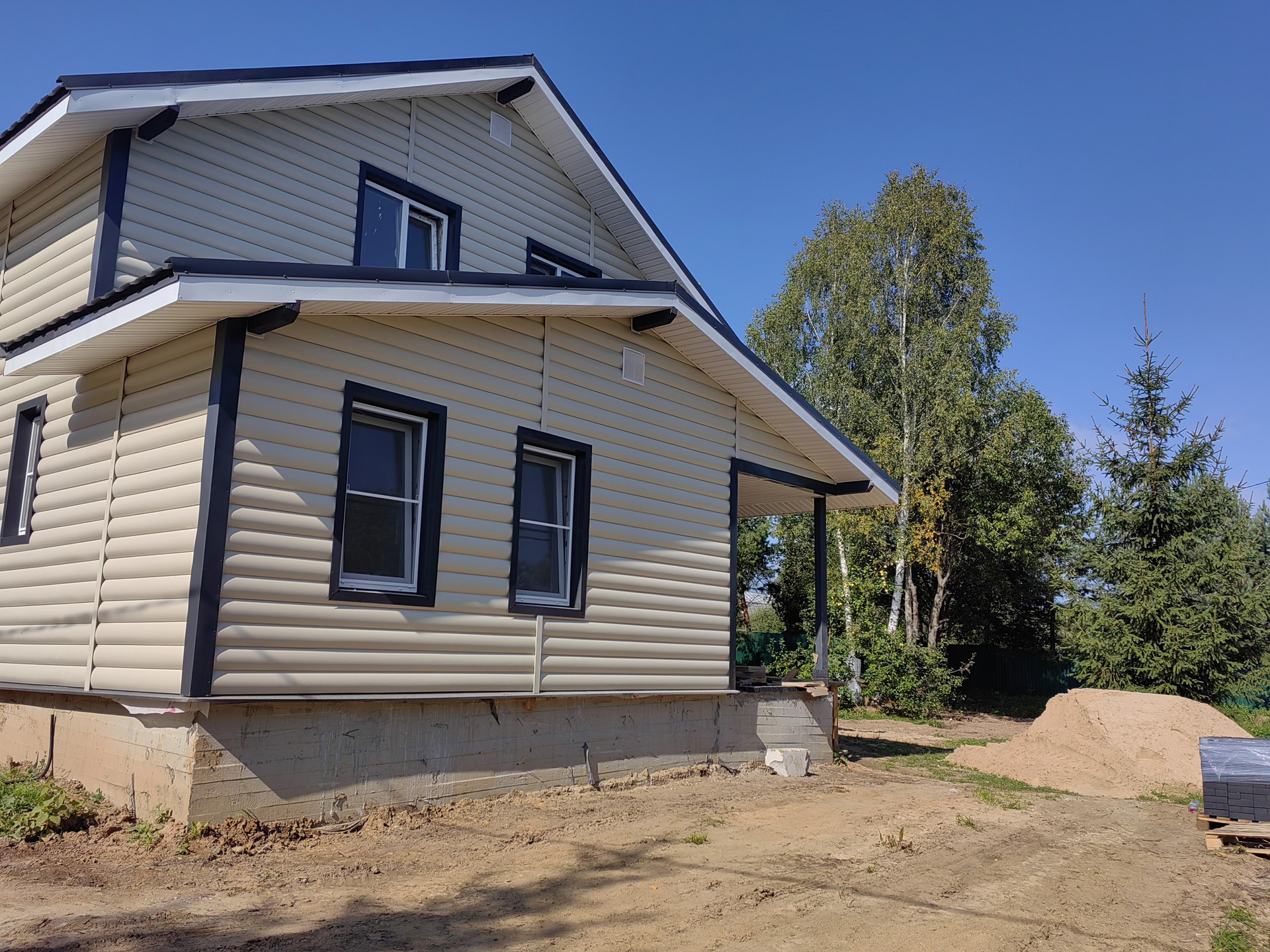 Новый дом Калужское шоссе 175 м кв. , 10-15 соток, все коммуникации, газ, теплые полы, лес, озеро, остановка. Школа, садик. Ж/д станция.