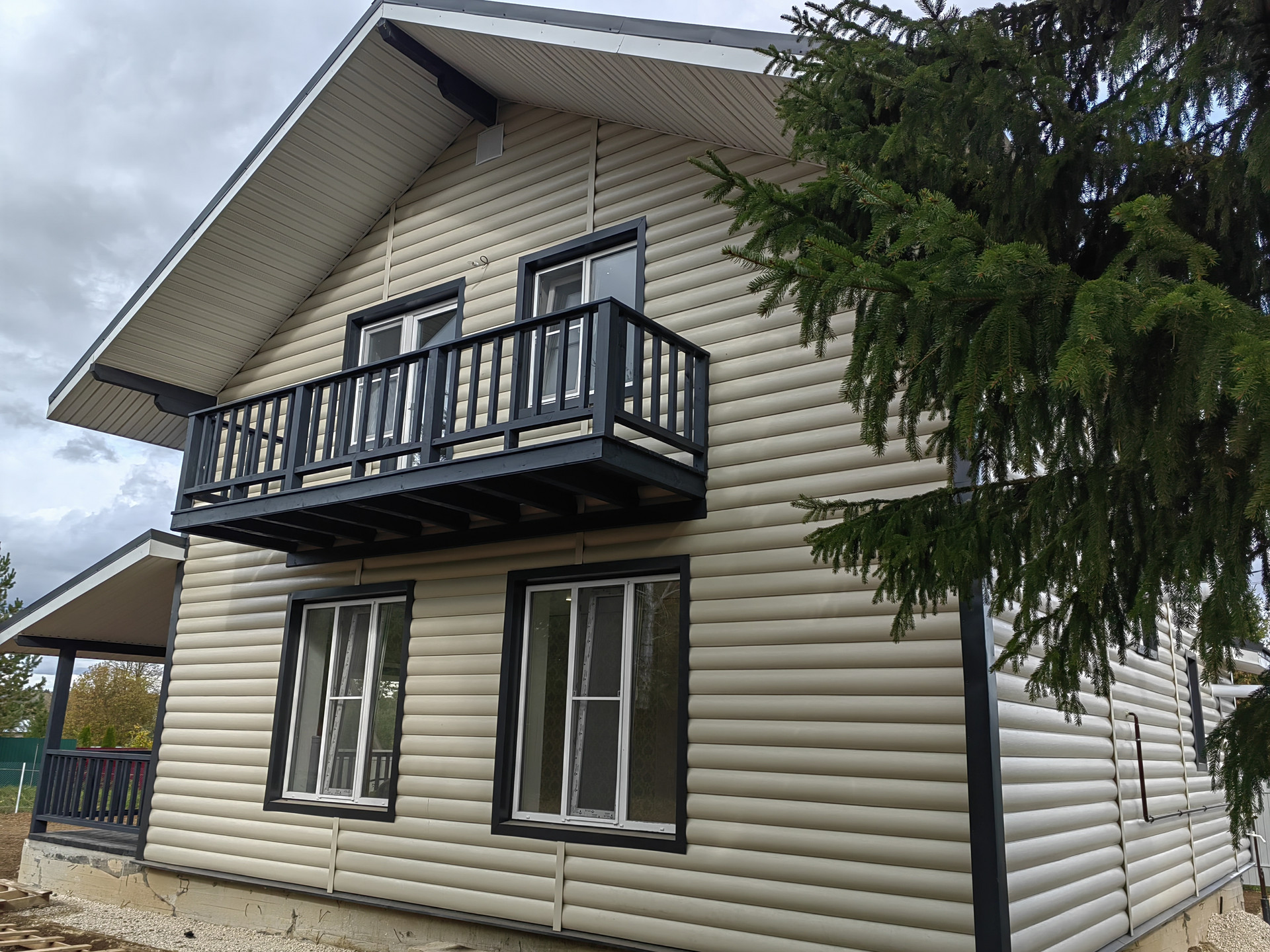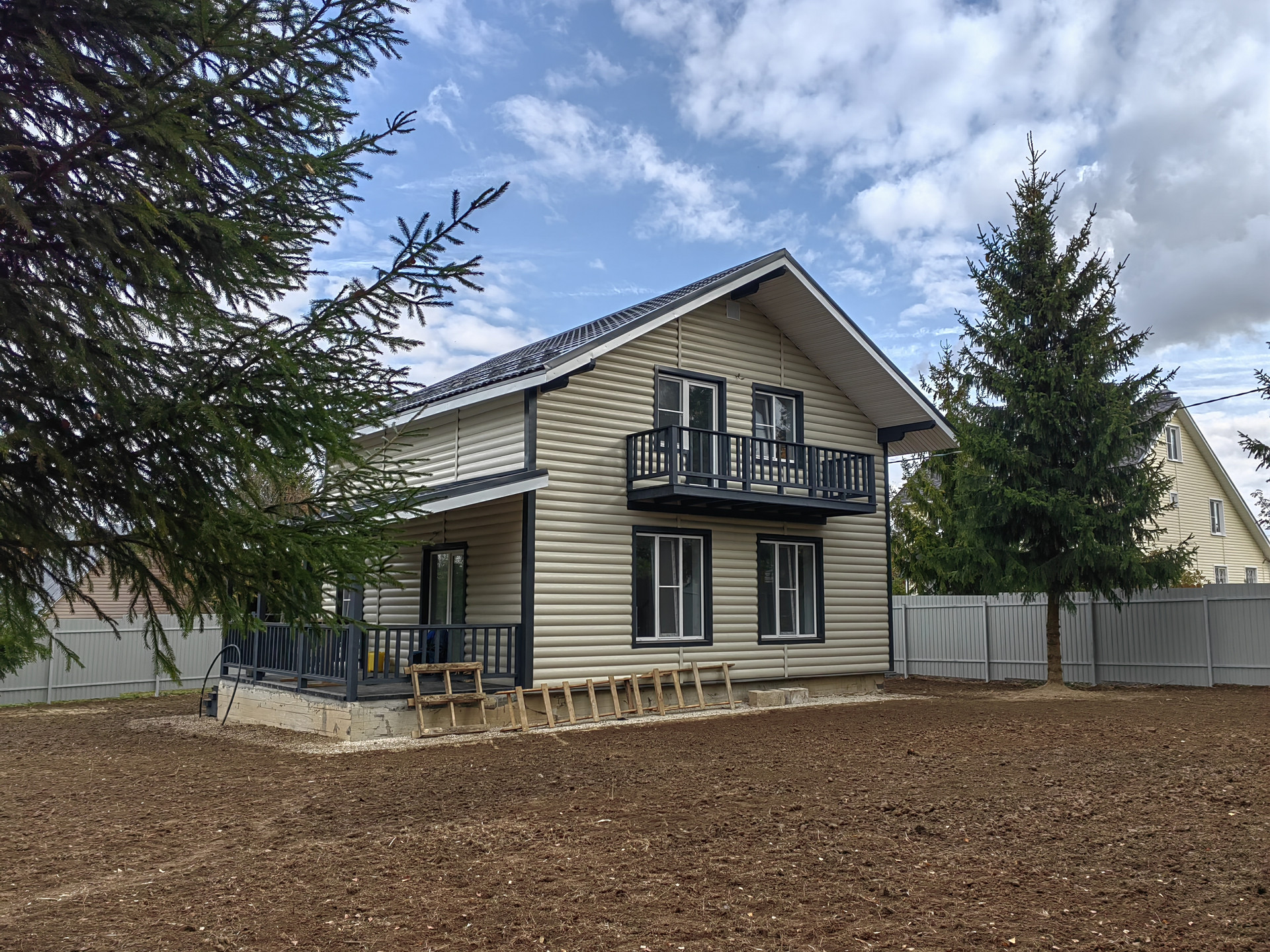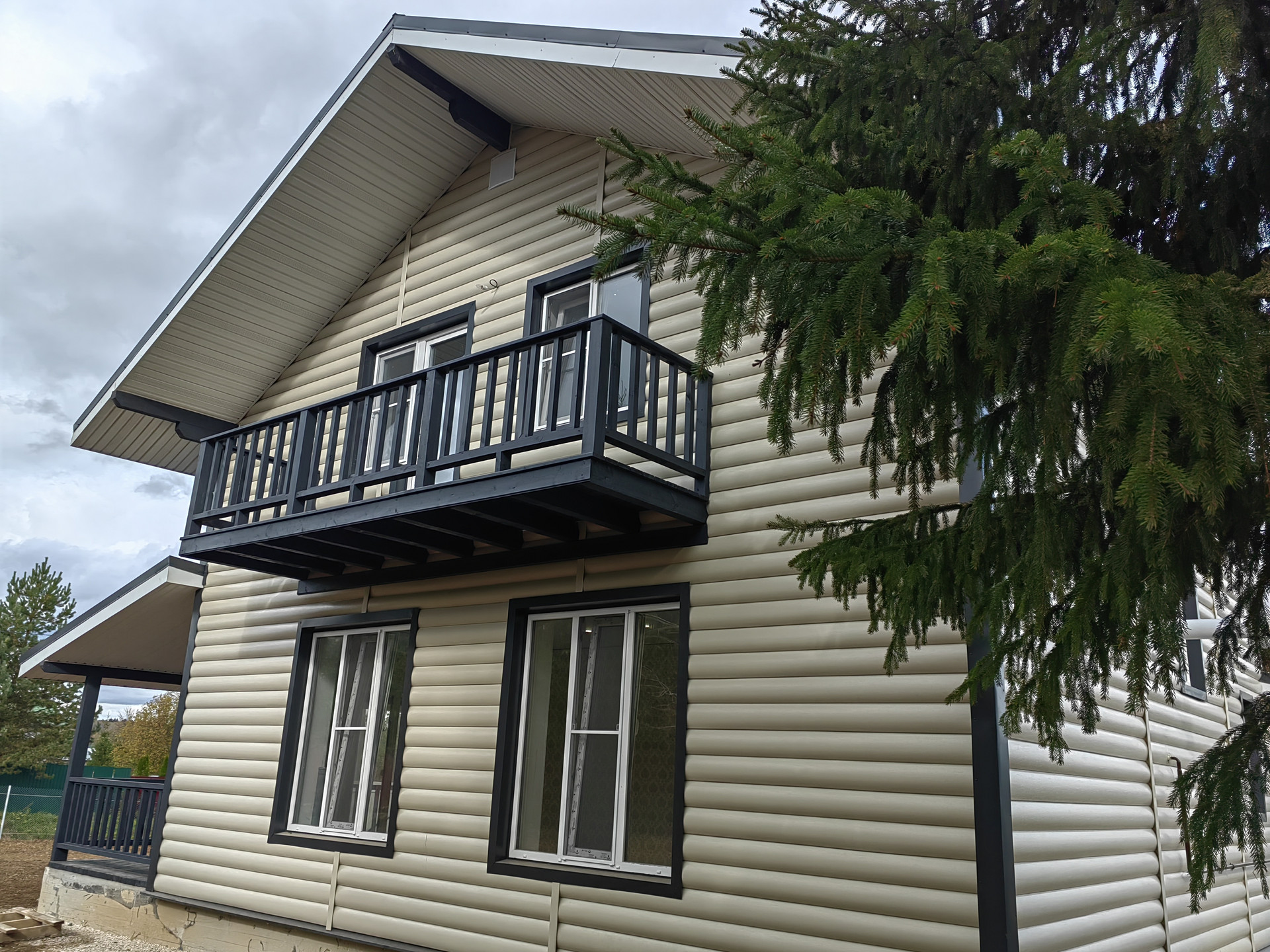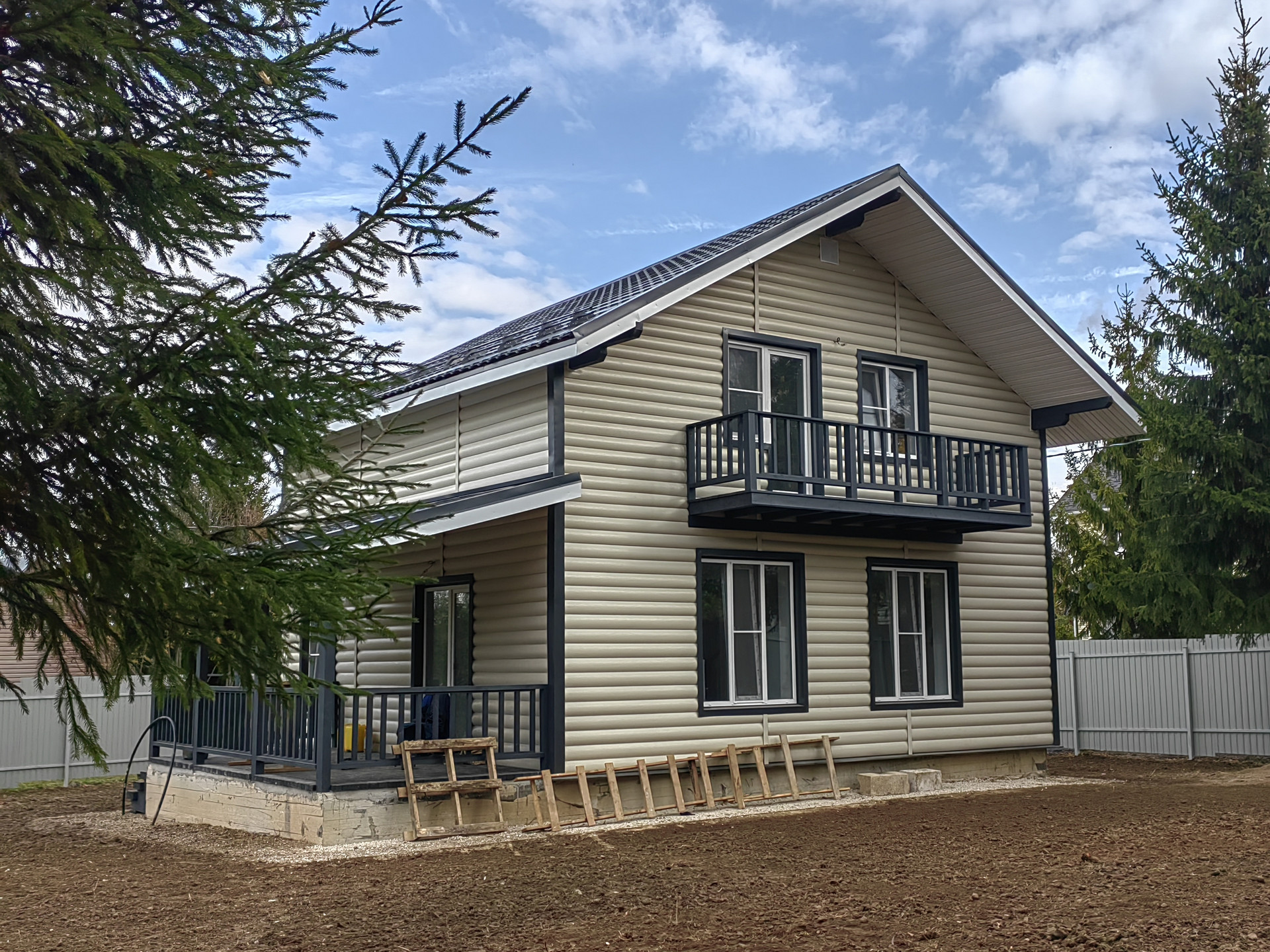 Дом из пеноблока (300 мм ), 180 кв. м, утепление пола и крыши 150 мм, отделка наружная сайдинг ; внутри имитация бруса обои плитка штукатурка. Крыша – метало черепица. Хорошая планировка: есть отдельная комната на 1 этаже, большая кухня-гостиная, сан узел, бойлерная, крыльцо, просторная терраса, удобная лестница на второй этаж на втором этаже три комнаты и холл и второй санузел.