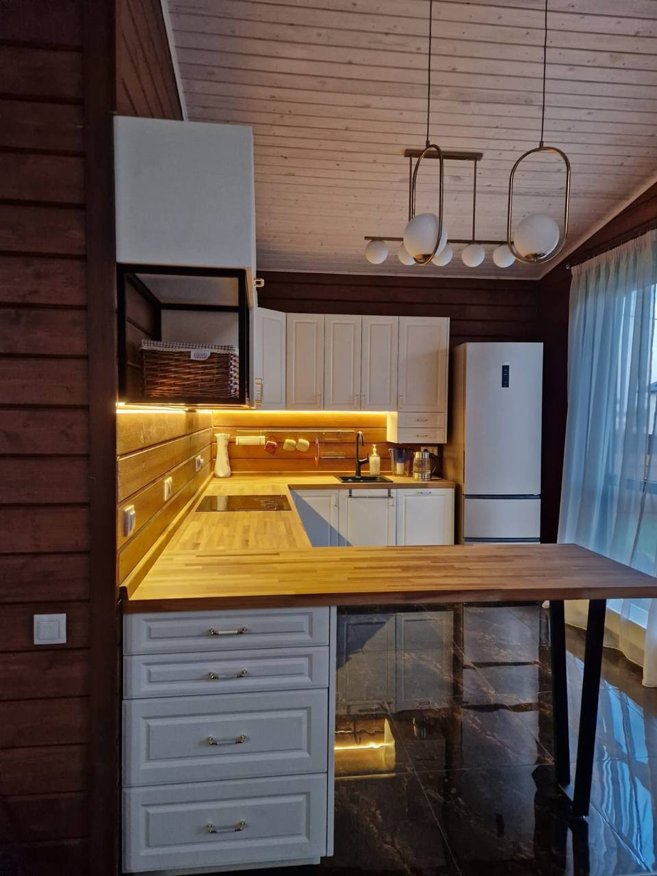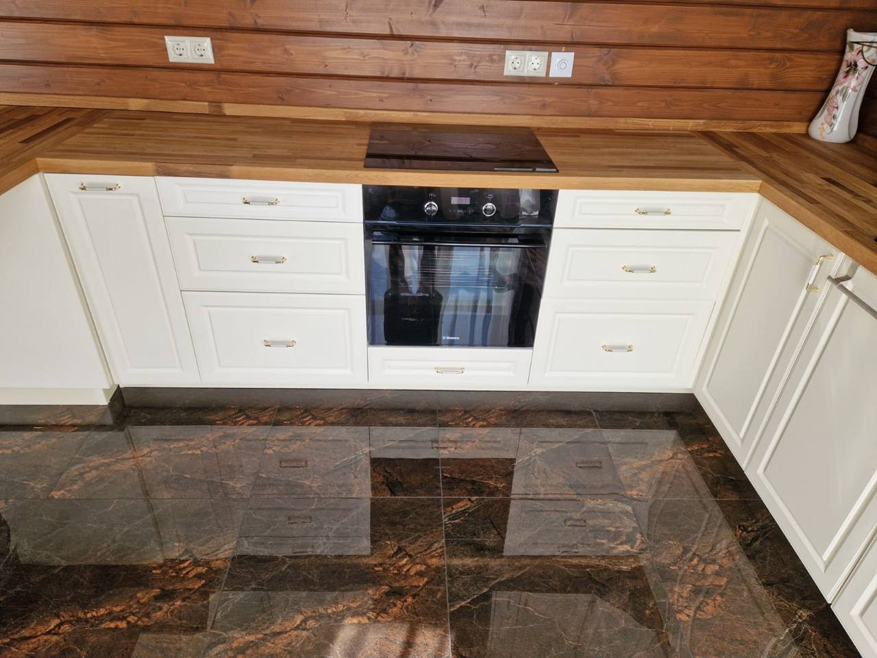 В доме все новое, делали для себя. Новая кухня Леруа Мерлен, холодильник Haier, столешница из массива дерева. Встроенная посудомойка Bosch, варочная панель (индукция), духовка. Индийская плитка из керамогранита, тёплые полы с регулировкой в кухне и коридоре. В гостиной и комнатах паркет с пробковым утеплением.