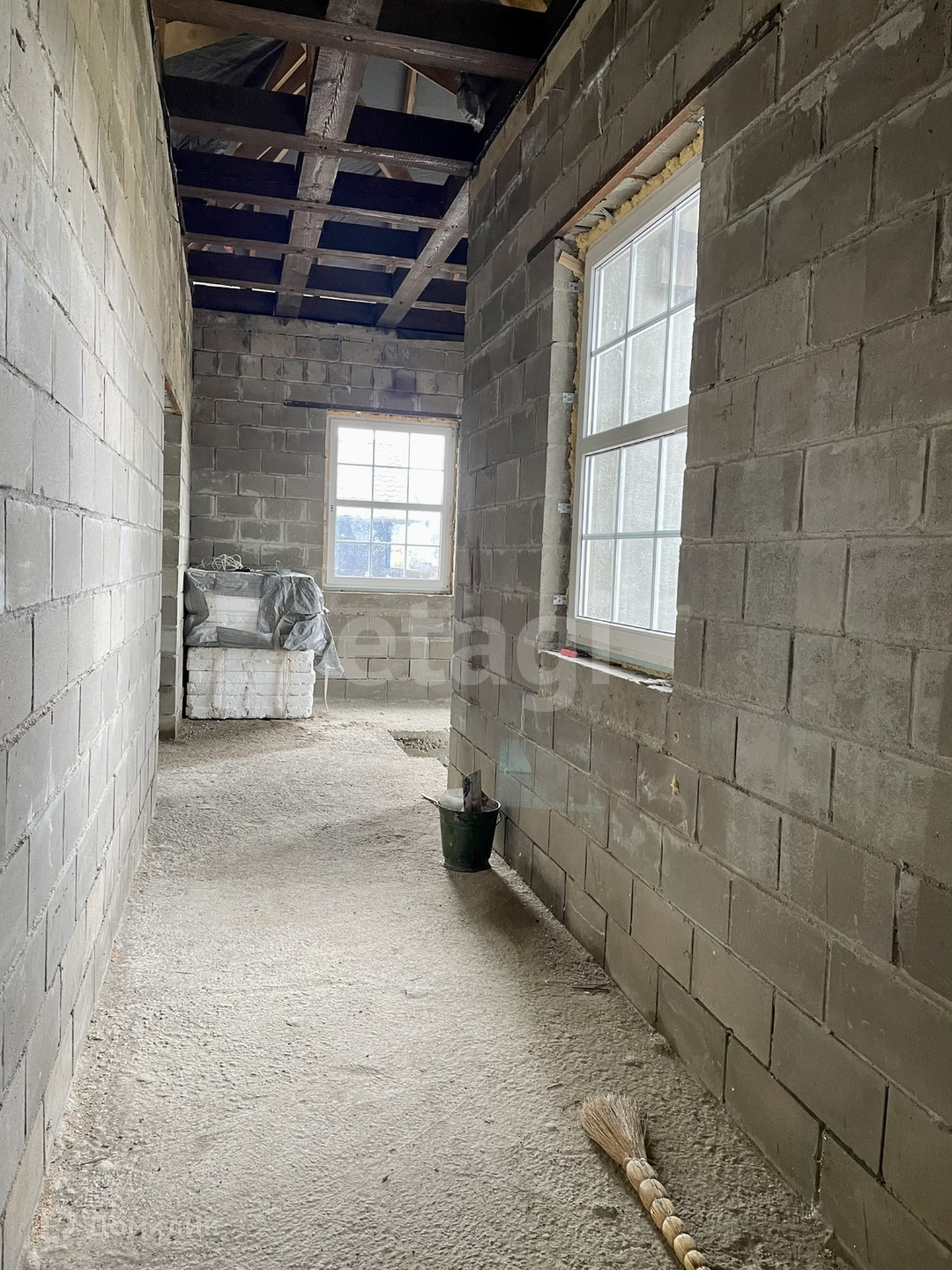 В 2019 году возведены стены, материал: цементный блок полнотелый 20/20/40 с утеплением снаружи пенополистерол 100мм.