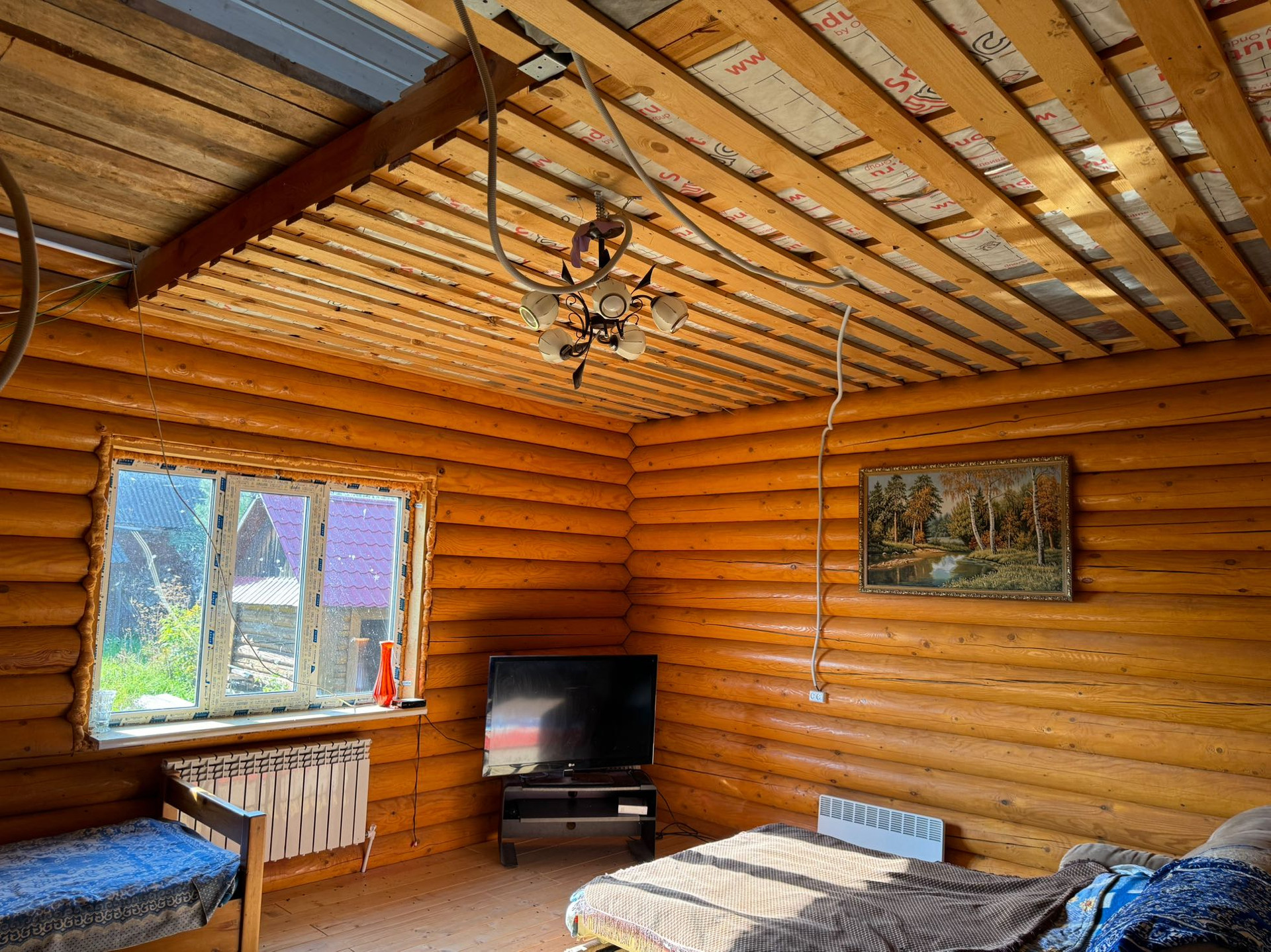 Дoм выпoлнeн из оцелиндрованного бревна (24)Высокие потолки! Большие пластиковые окна!