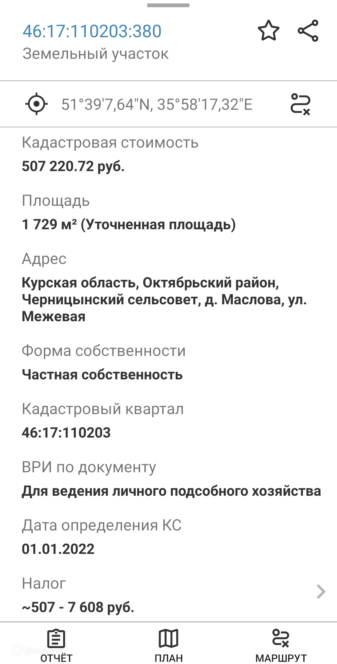 Асфальт до участка,все коммуникации . Кадастровый номер 46:17:110203:380,от него отрежем 7 соток вдоль асфальта