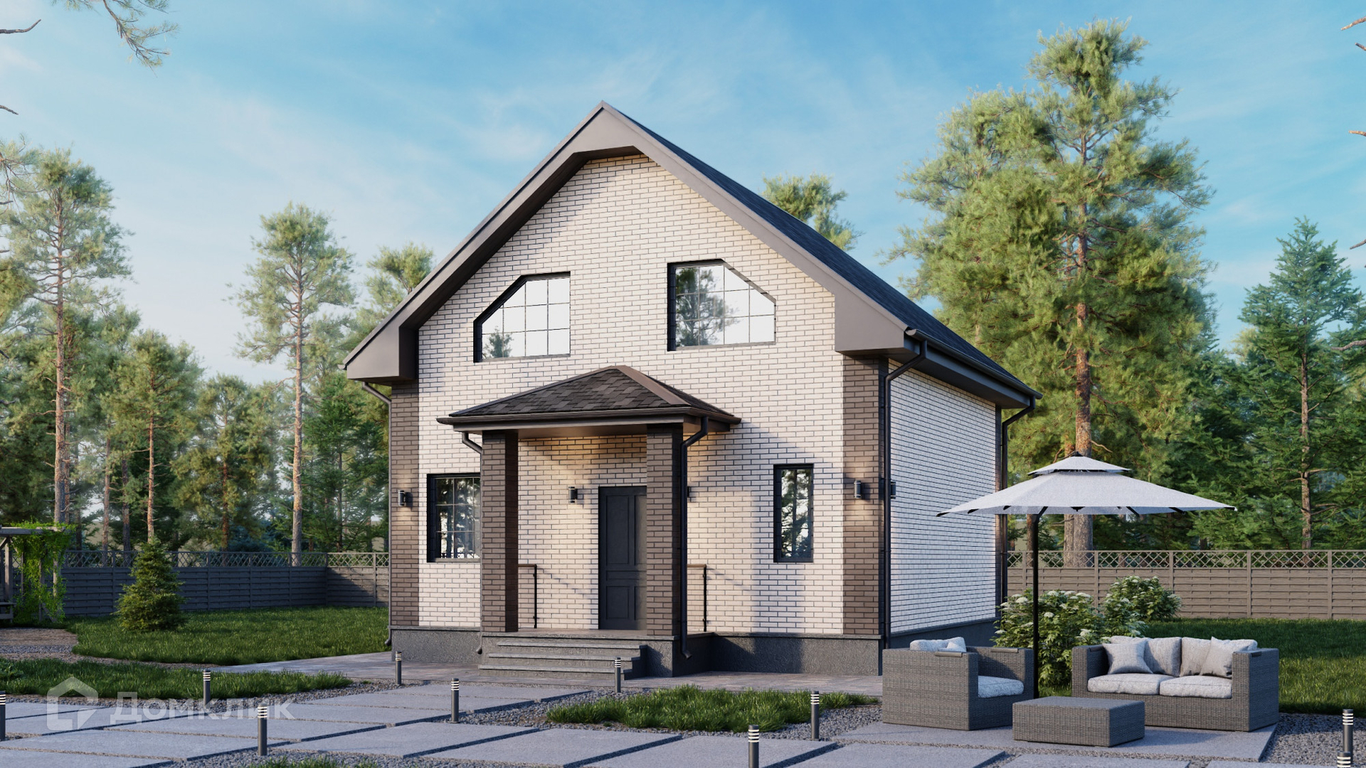О доме: Двухэтажный коттедж 110  кв. м. на земельном участке 7 соток с выходом из кухни-гостиной.