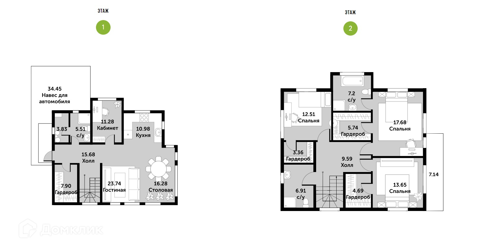 - Две спальни с гардеробными