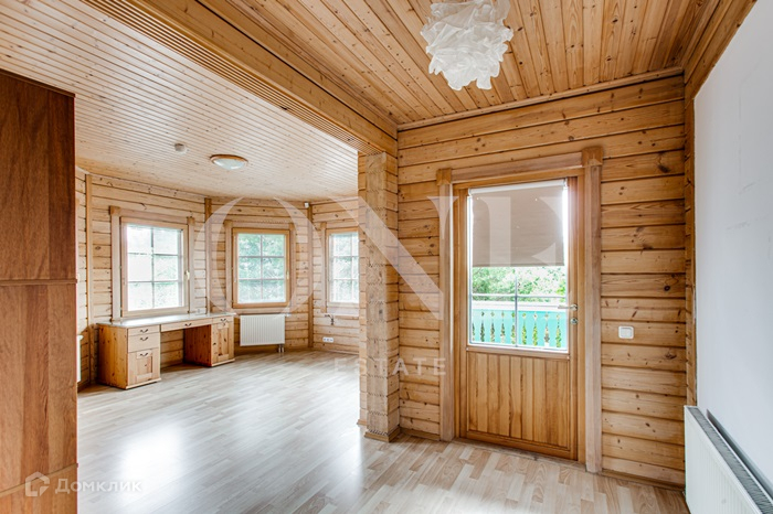 ID 2747 Загородный дом в КП "Сновидово". В доме много высоких окон во французском стиле, которые придают изящности архитектуре и наполняют внутреннее пространство солнечным светом. Стены, полы и потолки во всем доме отделаны натуральным деревом теплых оттенков, благодаря чему интерьеры наполнены особым загородным уютом. Планировка: 1 этаж: холл, котельная, постирочная, спальня, SPA зона (сауна, с/у, душ), гостиная с камином, кухня-столовая. 2 этаж: холл, спальня с с/у, кабинет, гардероб, 2 спальни, с/у. Коммуникации центральные, поселковая скважина с родниковой водой