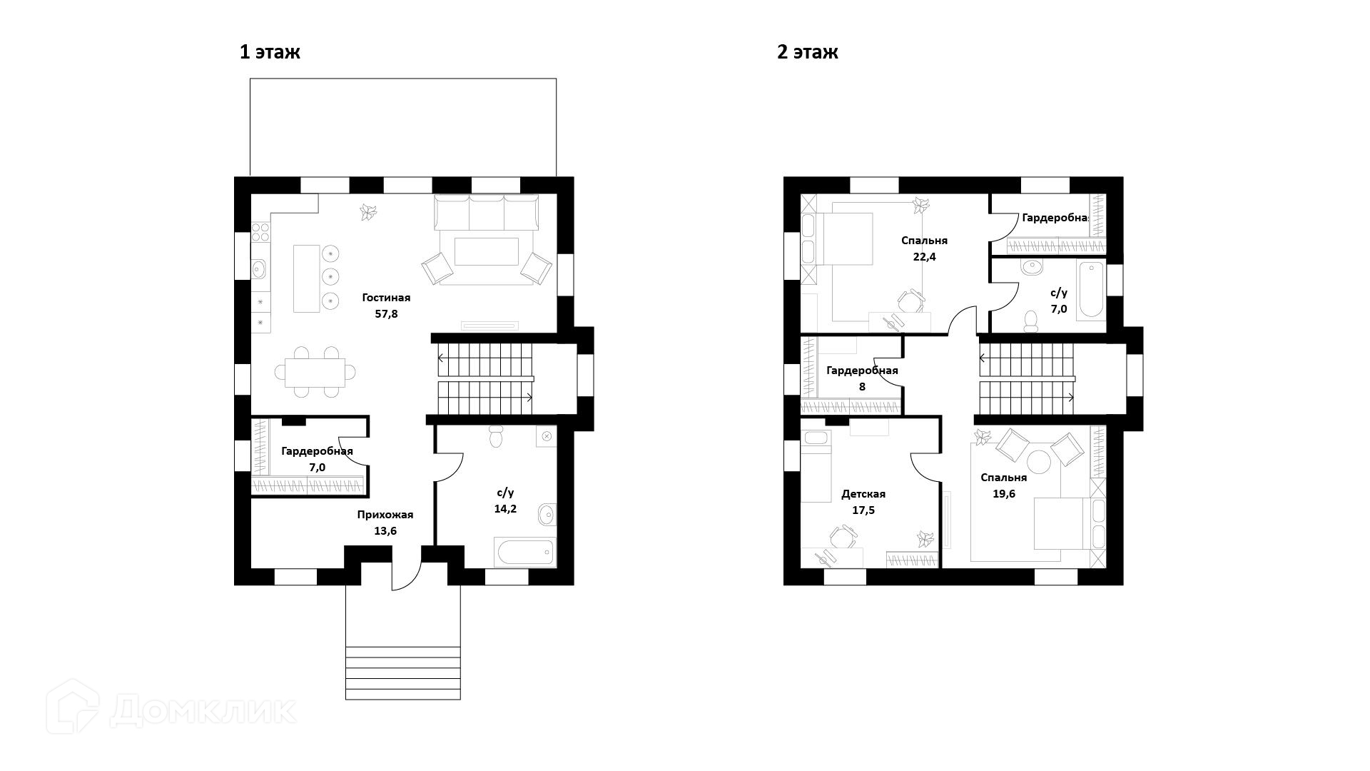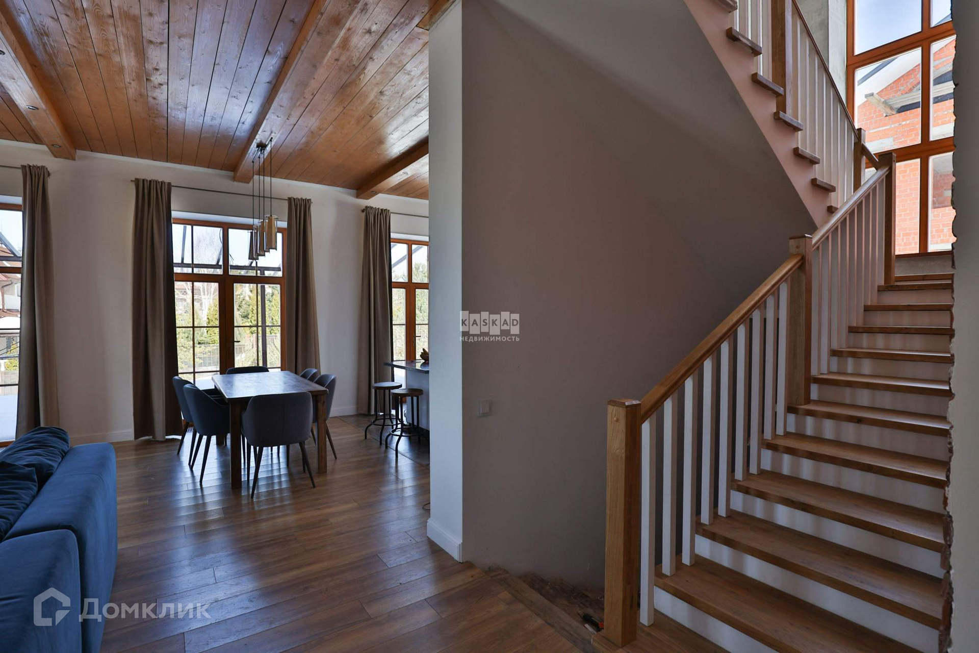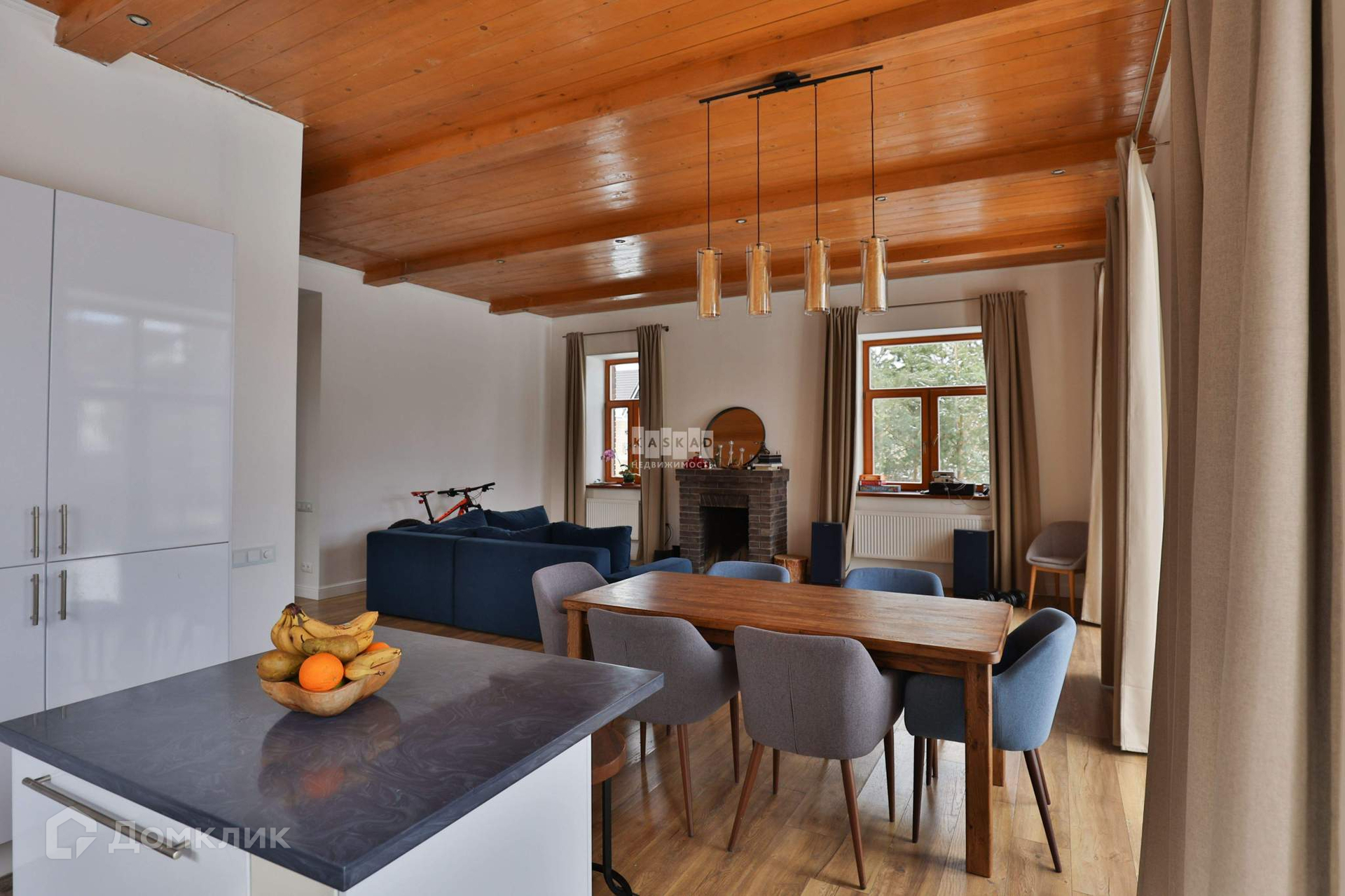 На первом этаже находится кухня-гостиная с дровяным камином и выходом на террасу, гостевая спальня (кабинет) , санузел, котельная, гардеробная, прихожая. Второй этаж занимает три спальни, одна из которых имеет свою гардеробную и ванную комнату, большой санузел. Третий этаж - помещение свободного назначения, в котором, по желанию, можно расположить 2-3 спальни.