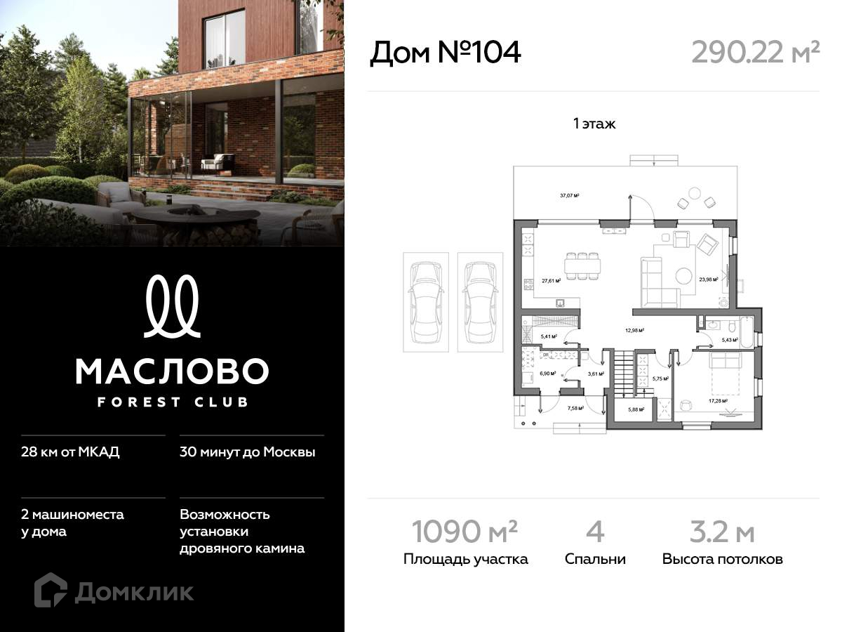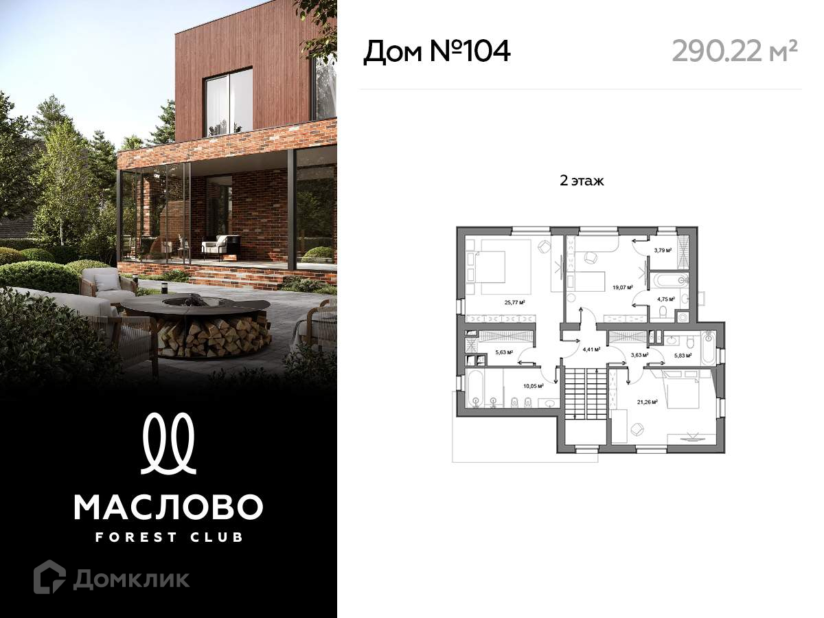 2-этажный дом, 290.22 м2, на продажу в деревне Маслово, коттеджный посёлок Маслово форест клаб, 104