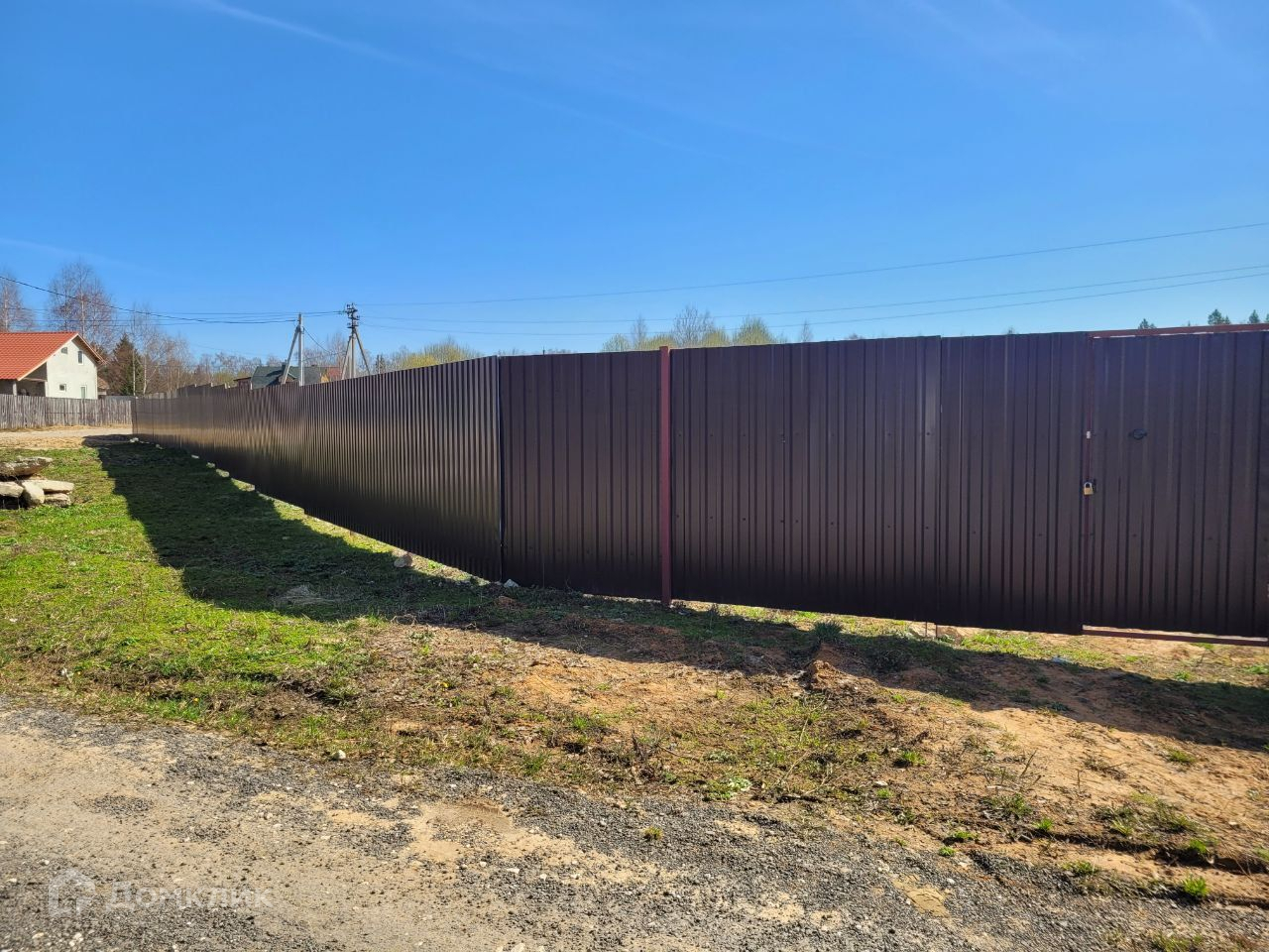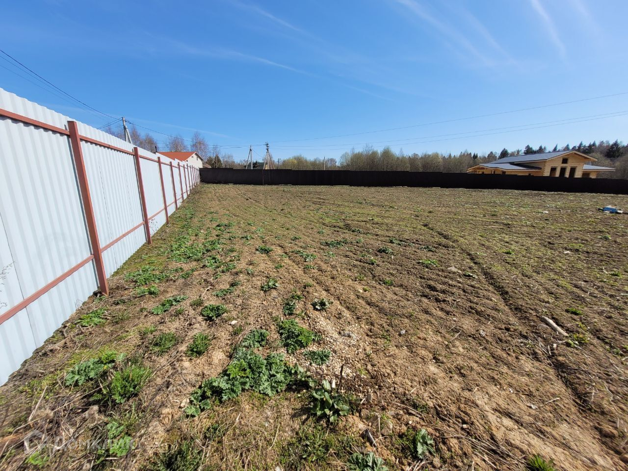 Продаётся участок площадью 15,5 соток. Участок сухой, расчищен, выровнен, огорожен забором из профлиста с 3 сторон. Забор оснащен воротами для въезда и калиткой.