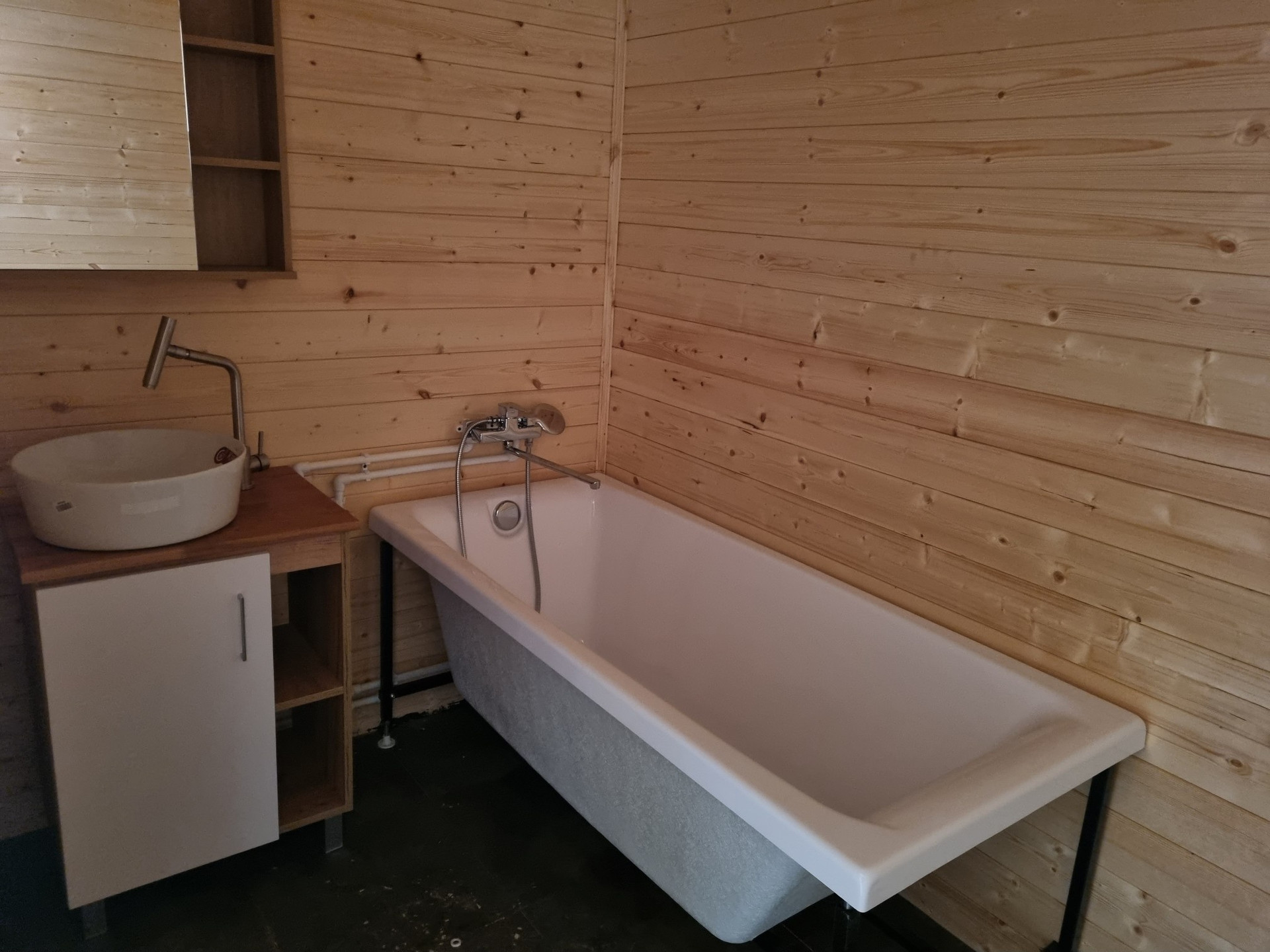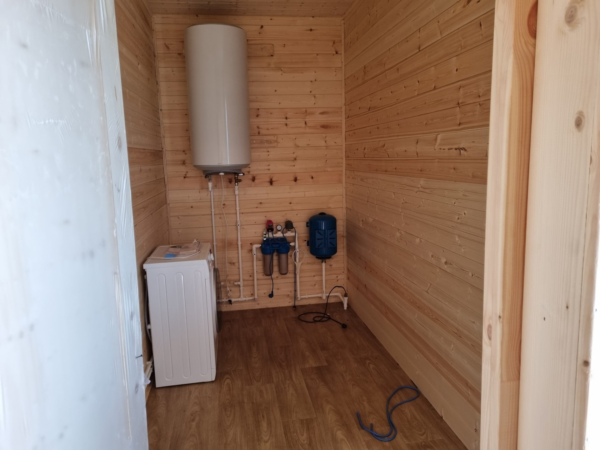 В доме уже есть унитаз, ванная, гигиенический душ, раковина красивая, стиральная машинка. Все подключено. Есть техника - варочная панель индукция и духовой шкаф. При необходимости завезу и холодильник, пока не успели.