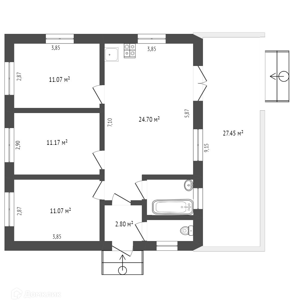 Общая площадь 65 м2