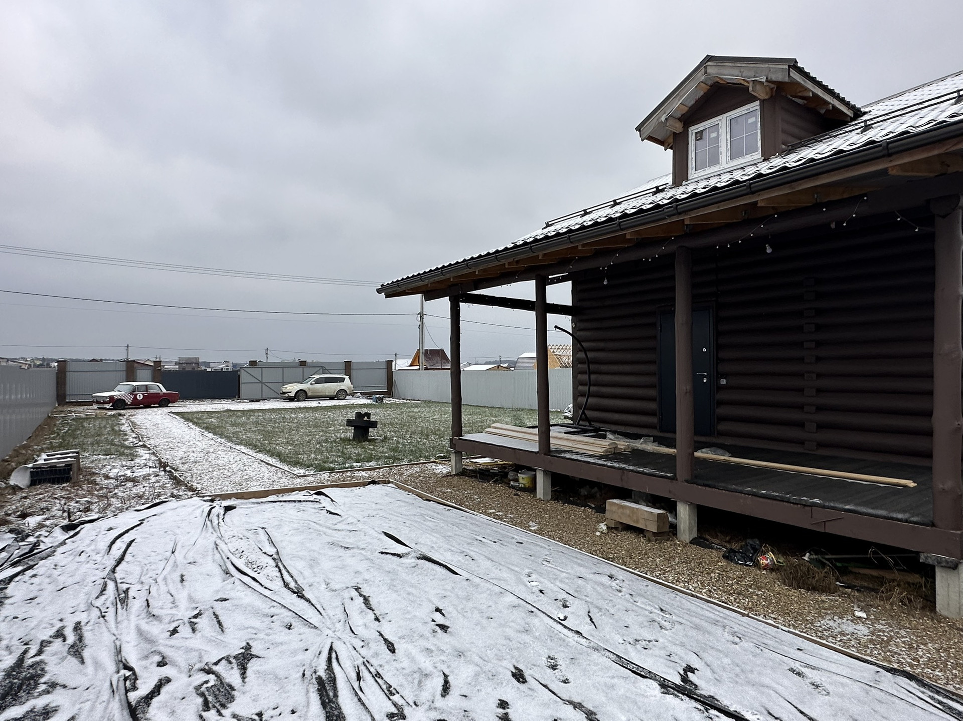 Дом строился как круглогодичный, при необходимости можно сделать из него дом-баню. Перед ним участок с возможностью строительства еще одного дома. Справа от дома был запланирован бассейн.