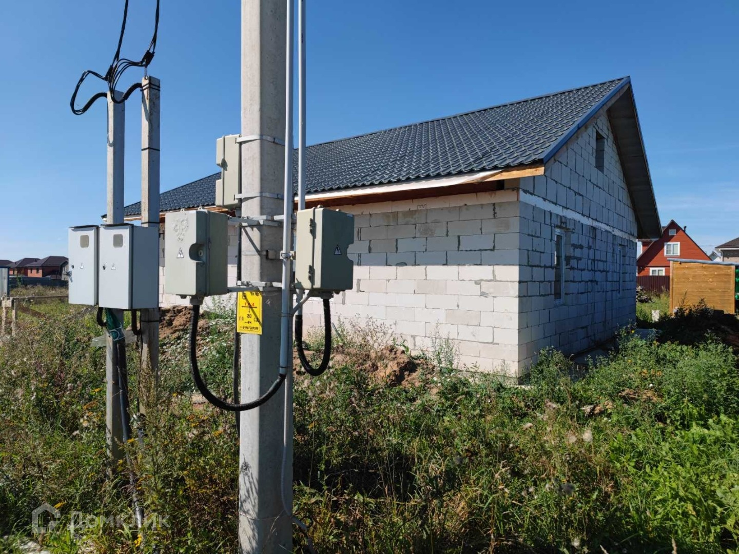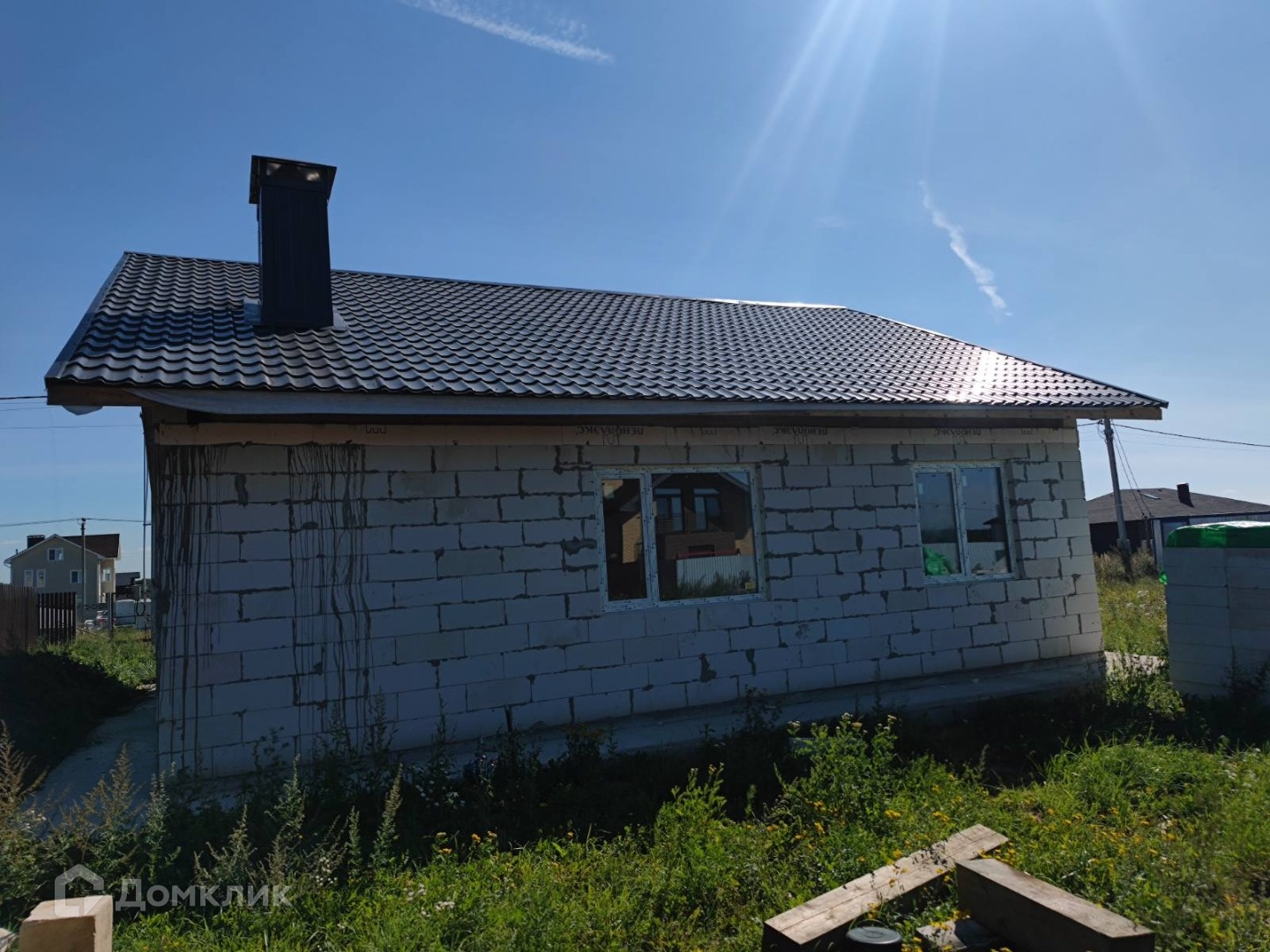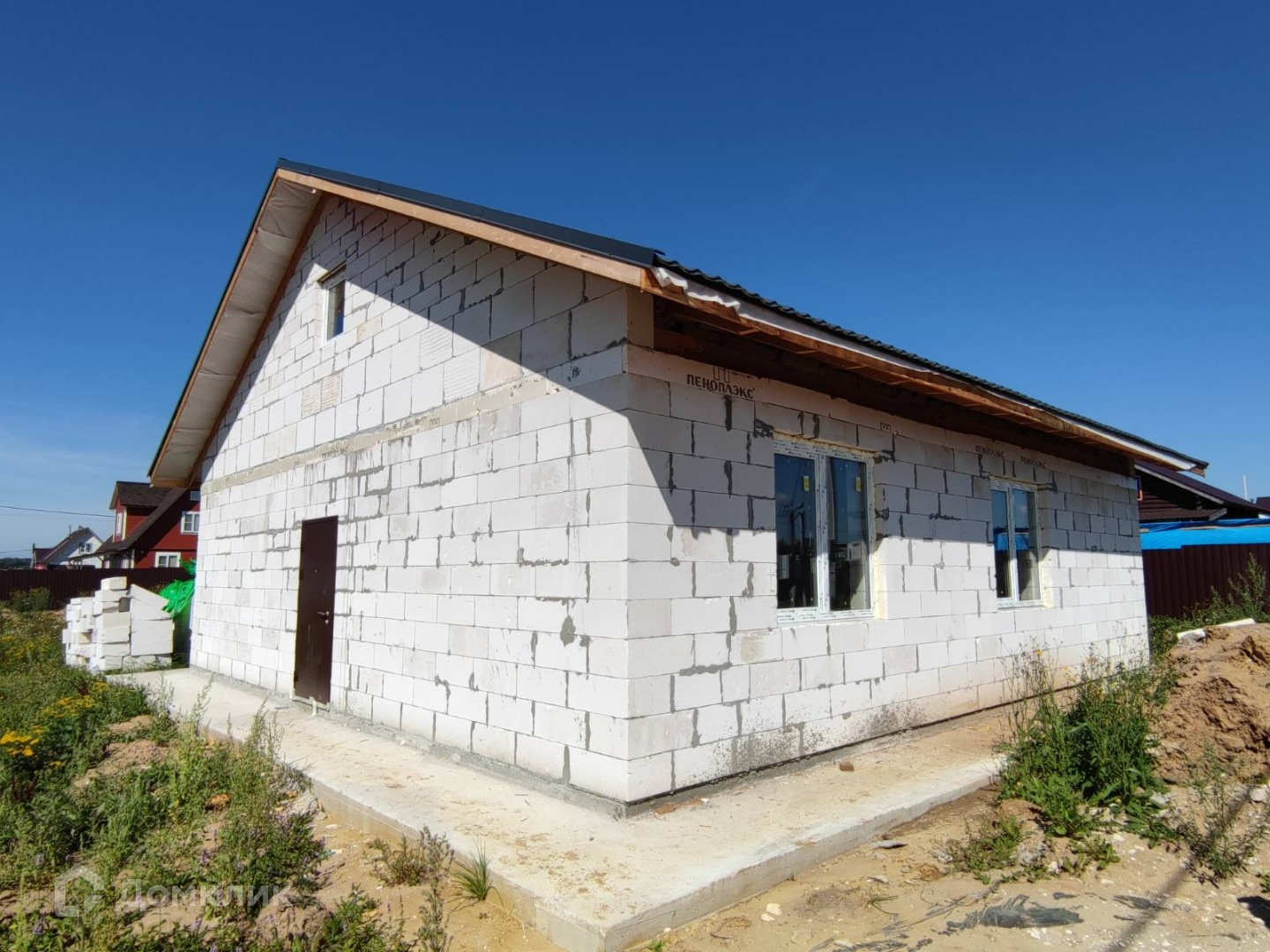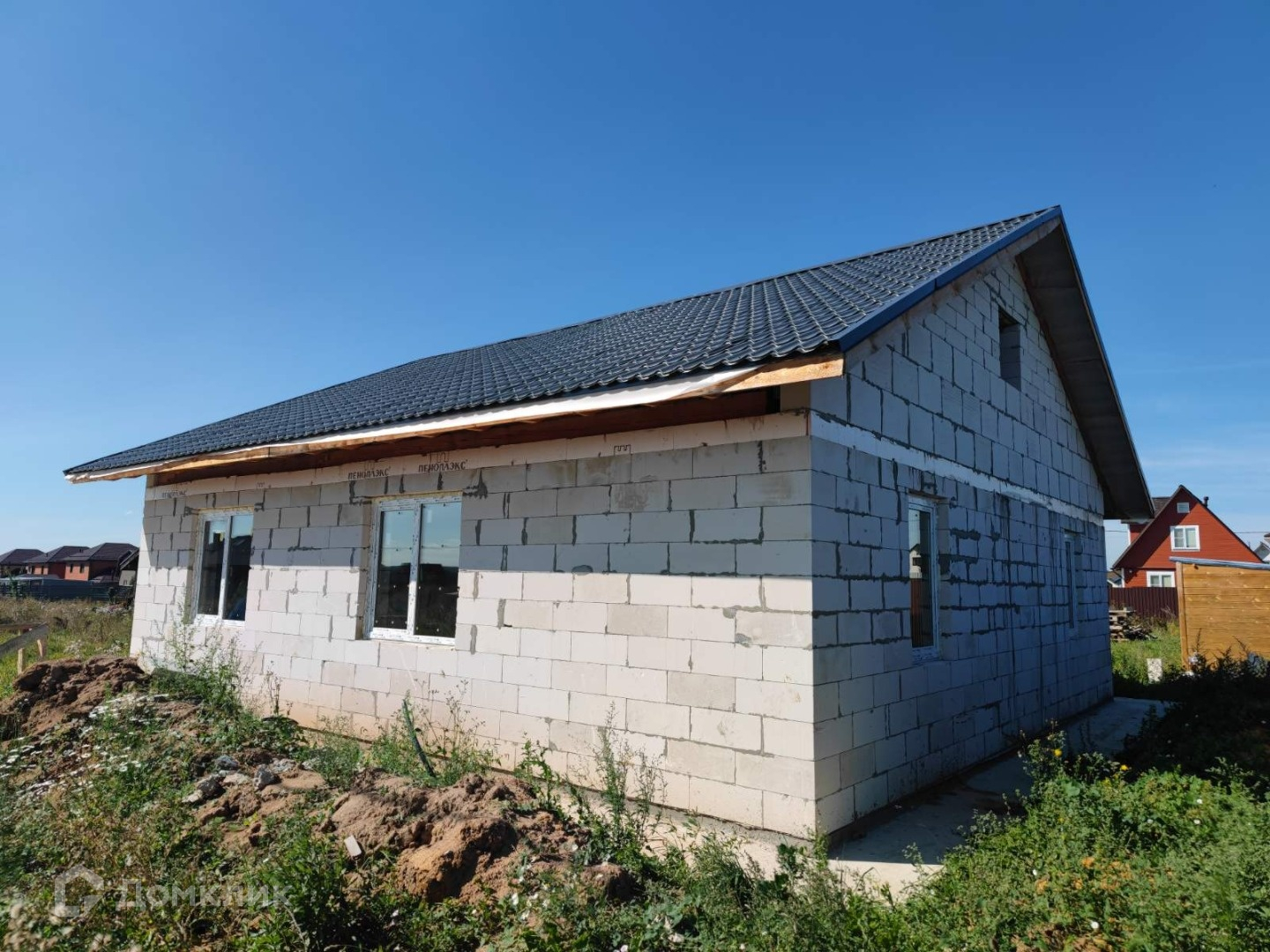 Дом построен в 2024. Закрыт теплый контур: возведены наружные стены и внутренние перегородки, перекрытие первого этажа, кровля, установлены качественные окна и входная дверь. Фундамент ленточный заглубленный, перекрыт монолитной плитой. Кровельный пирог и перекрытие тщательно утеплены, согласно проекту.