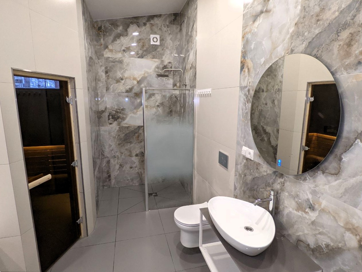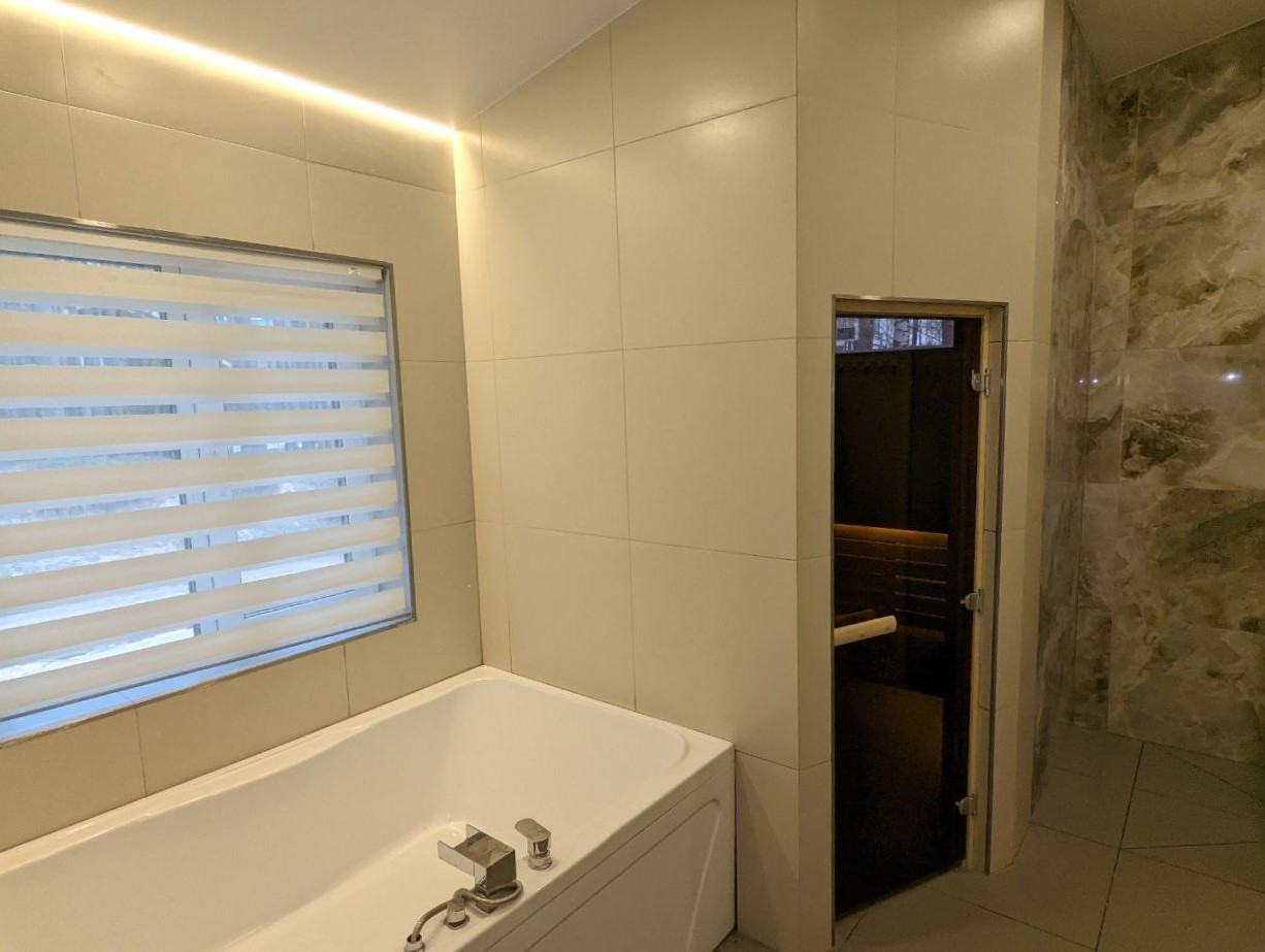 Внутри дома: дизайнерский ремонт, три спальни, гардеробные, котельная-прачечная с раковиной, гостиная Студия с установленной кухней, печью-камином, выходом на террасу; ванная комната с сауной, ванной на двоих, душевым блоком, санузел с инсталляцией.