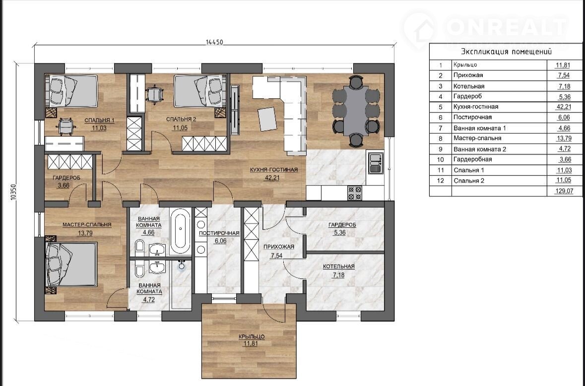 - трёх спален,