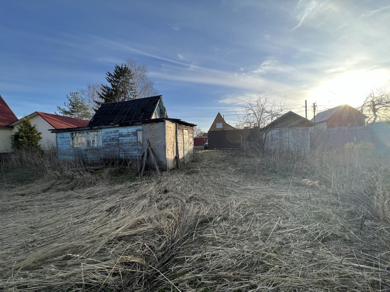 На участке есть летнее строение 50 кв. м, подойдет как времянка для строительства, электричество заведено внутрь, газ по границе участка, установлены откатные ворота. Участок с трех сторон огорожен, соседи живут круглый год, сама улица крайняя, чужие не ездят. Рядом остановка общественного транспорта, детская площадка, небольшие озера.