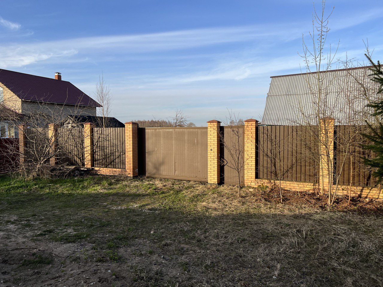 На участке есть летнее строение 50 кв. м, подойдет как времянка для строительства, электричество заведено внутрь, газ по границе участка, колодец, установлены откатные ворота. Участок с трех сторон огорожен, соседи живут круглый год, сама улица крайняя, чужие не ездят. Подъезд к участку с двух сторон. Рядом остановка общественного транспорта, детская площадка, небольшие озера.