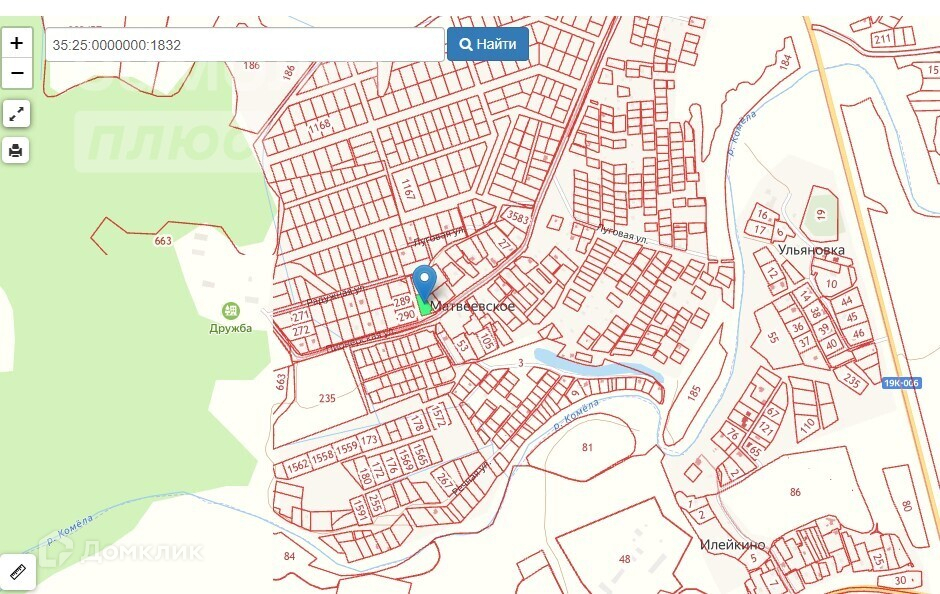 На участке - многочисленные плодовые и ягодные насаждения, теплица несколько сосен. Река Комела в 500 м от дома.