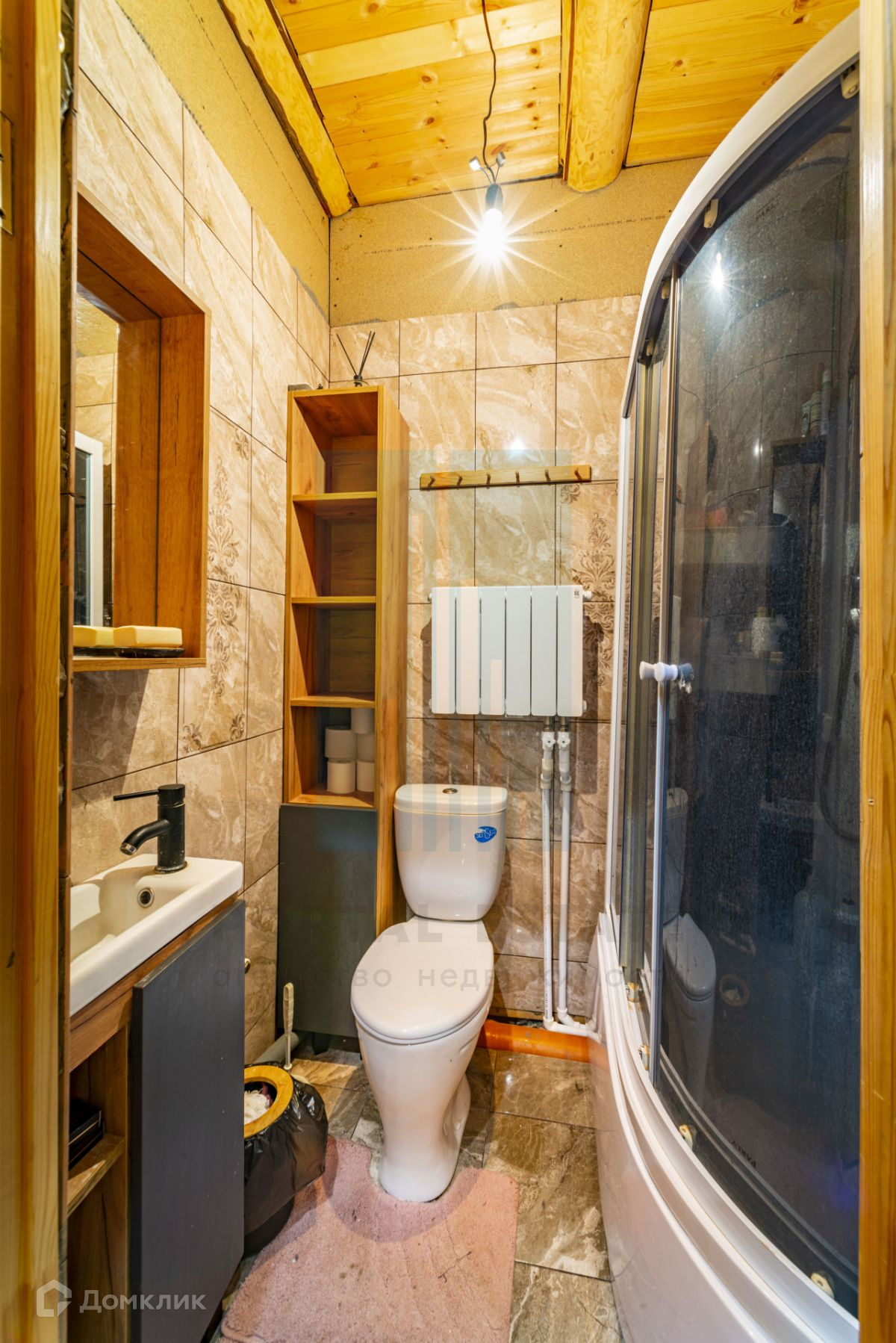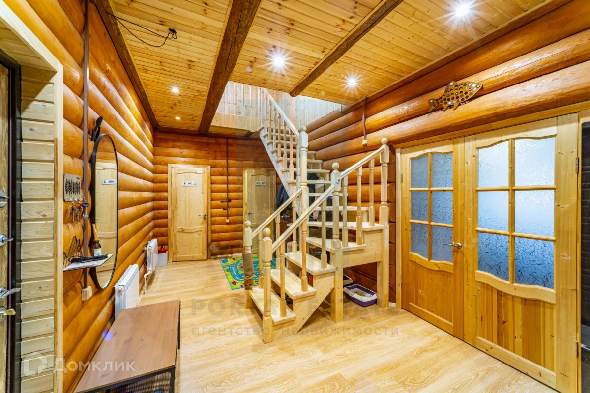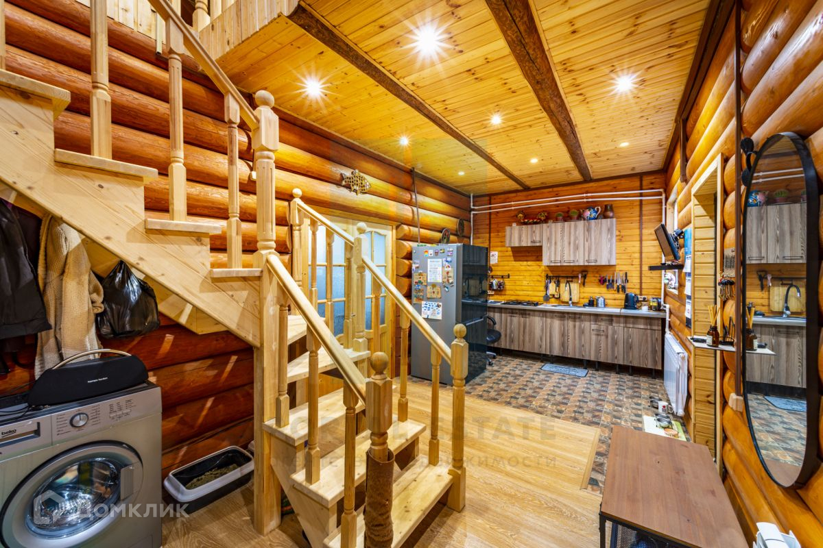 Дом 2 этажа из бревна ручной рубки диаметром от 28см и более (снаружи утеплен дополнительно и отделан блокхаусом), фундамент - ленточный. Крыша – металло-черепица. Окна – пластиковый стеклопакет с ламинацией, цвет карамель.