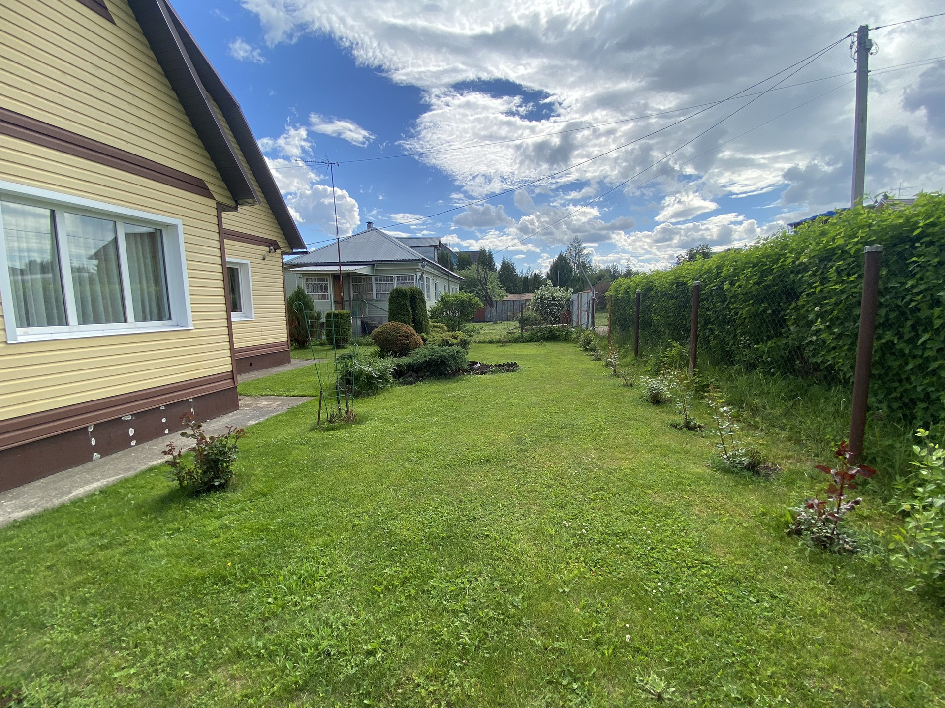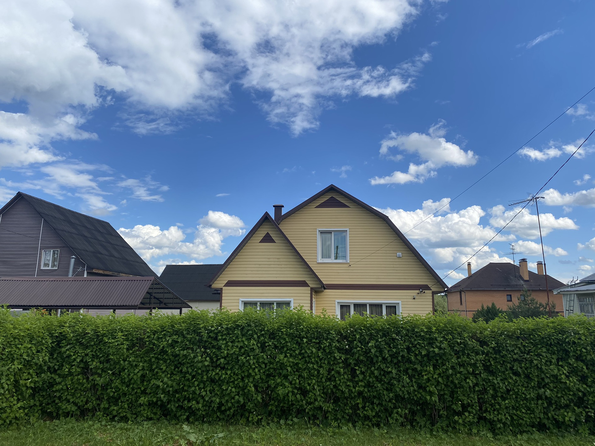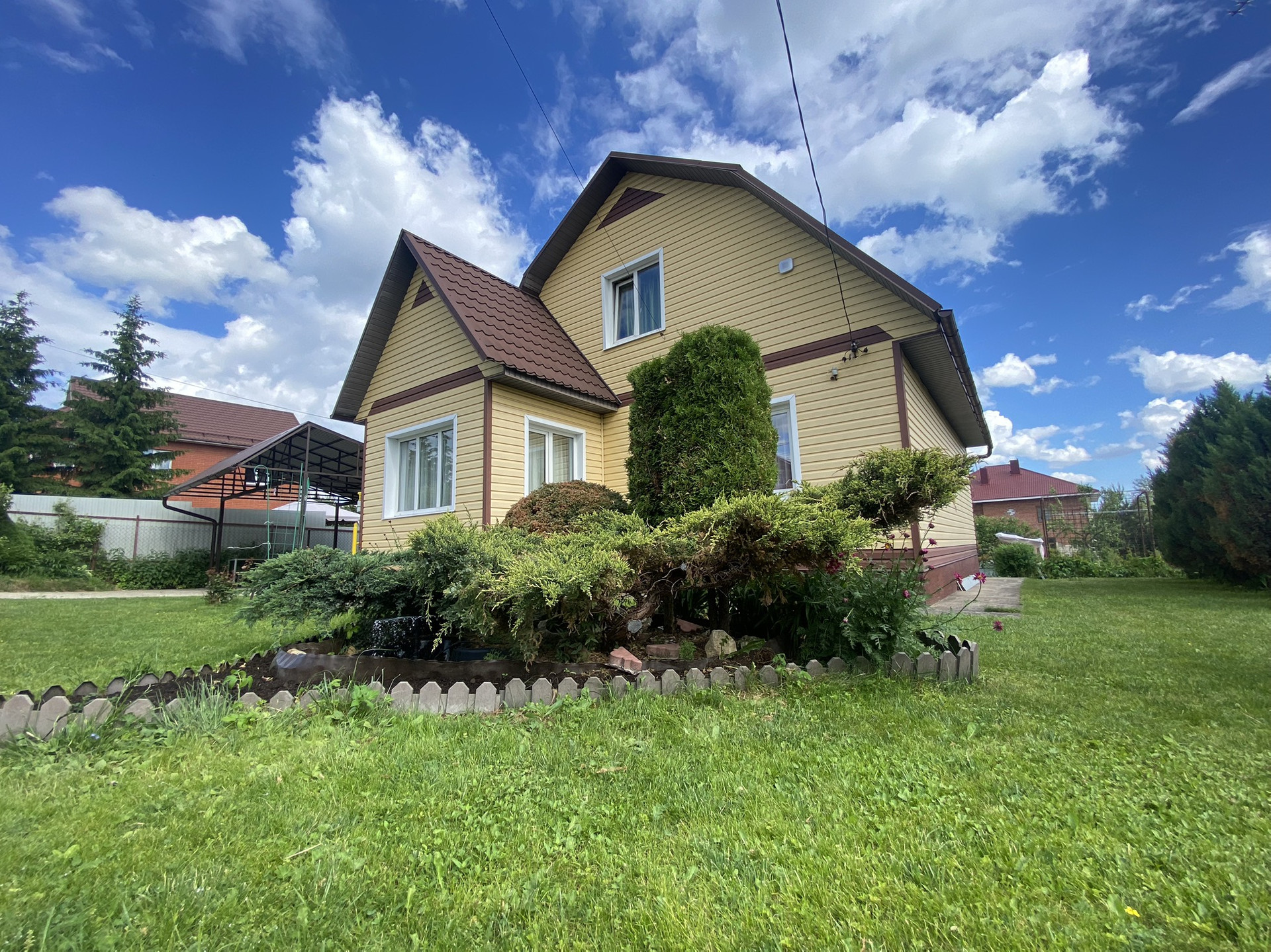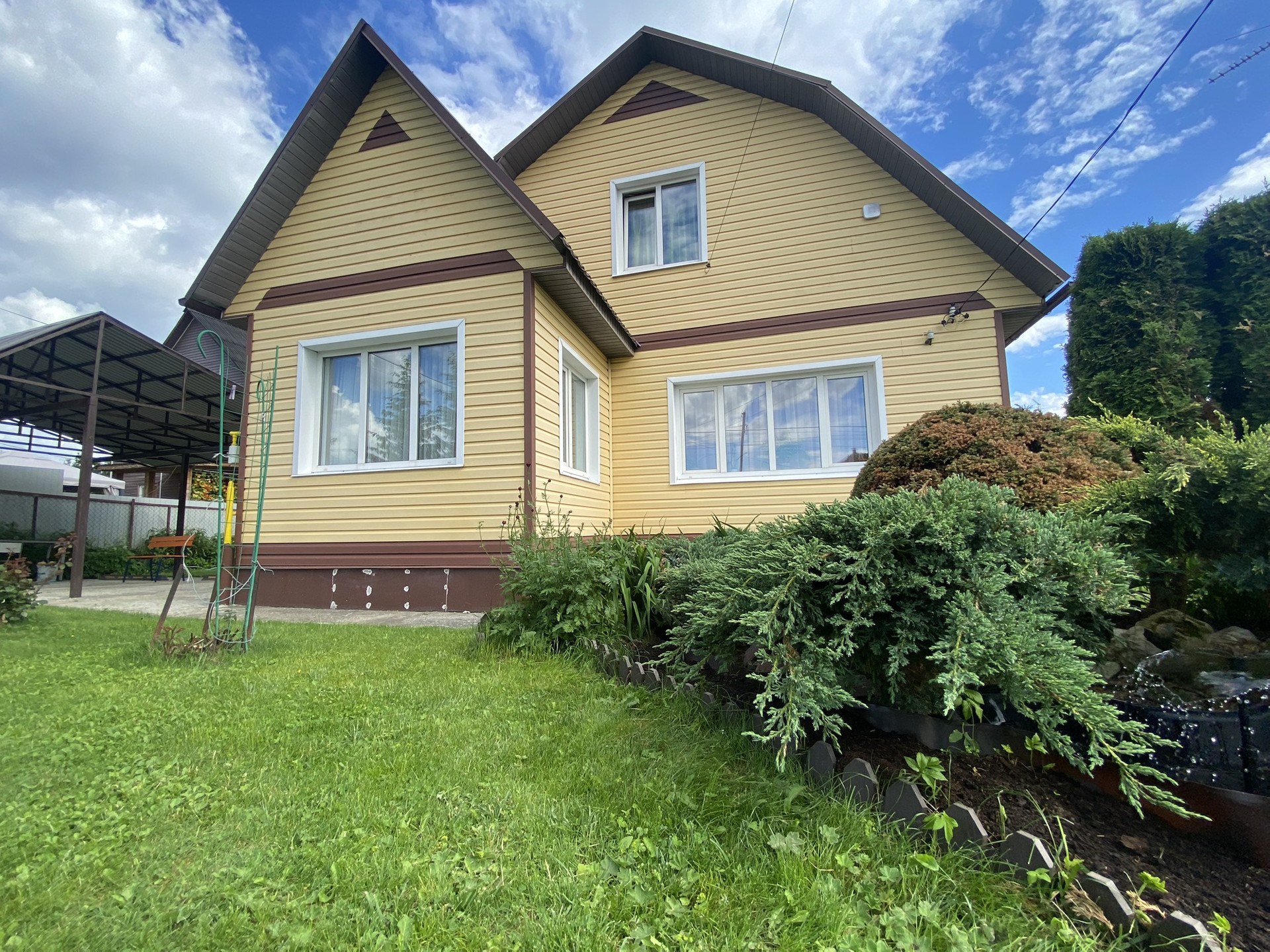 С внешней стороны очень качественный сайдинг. Крыша металлочерепица.