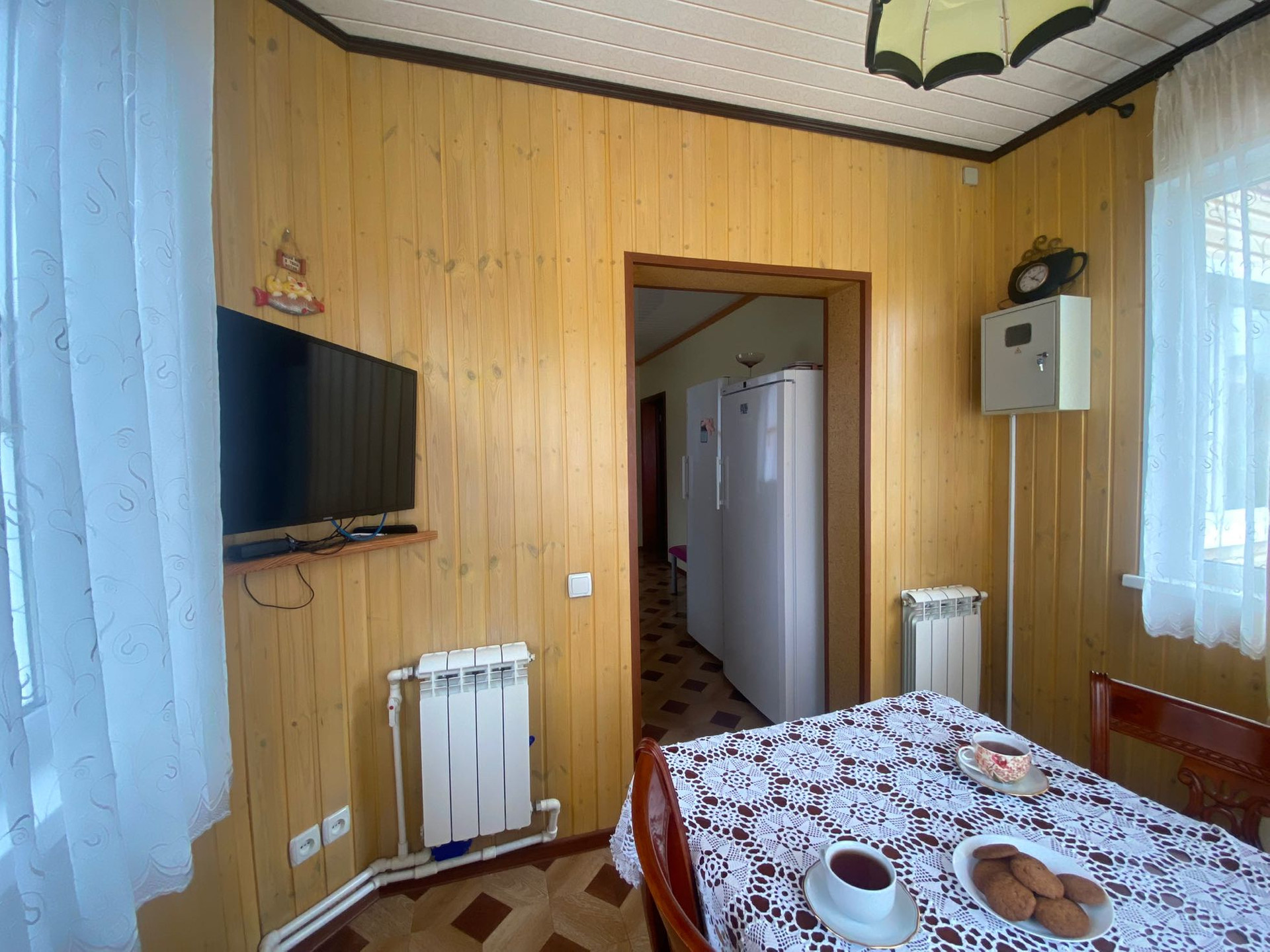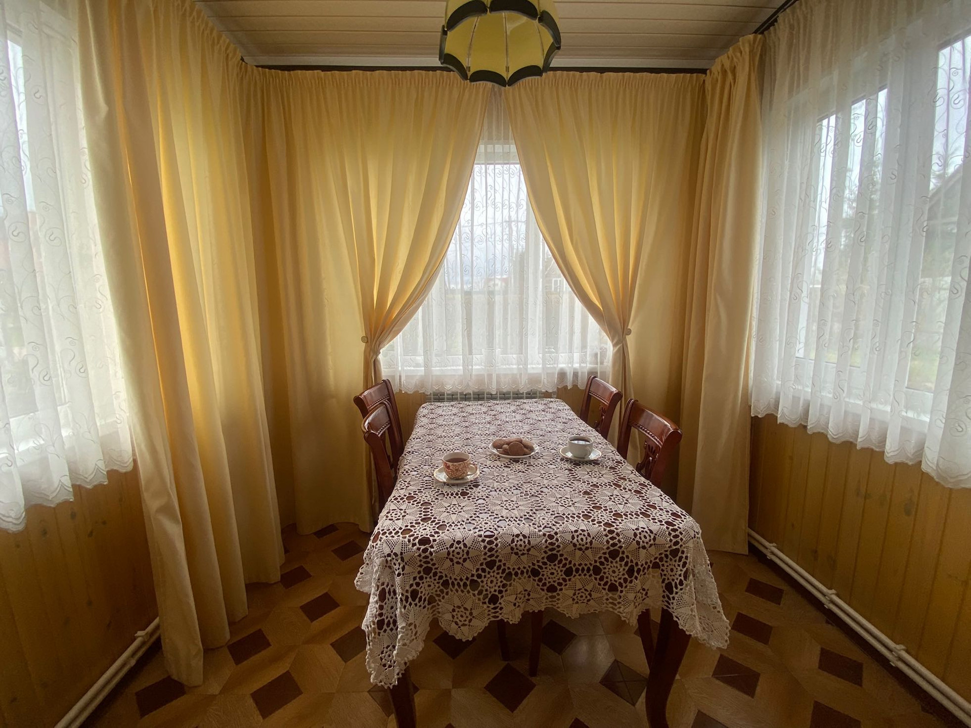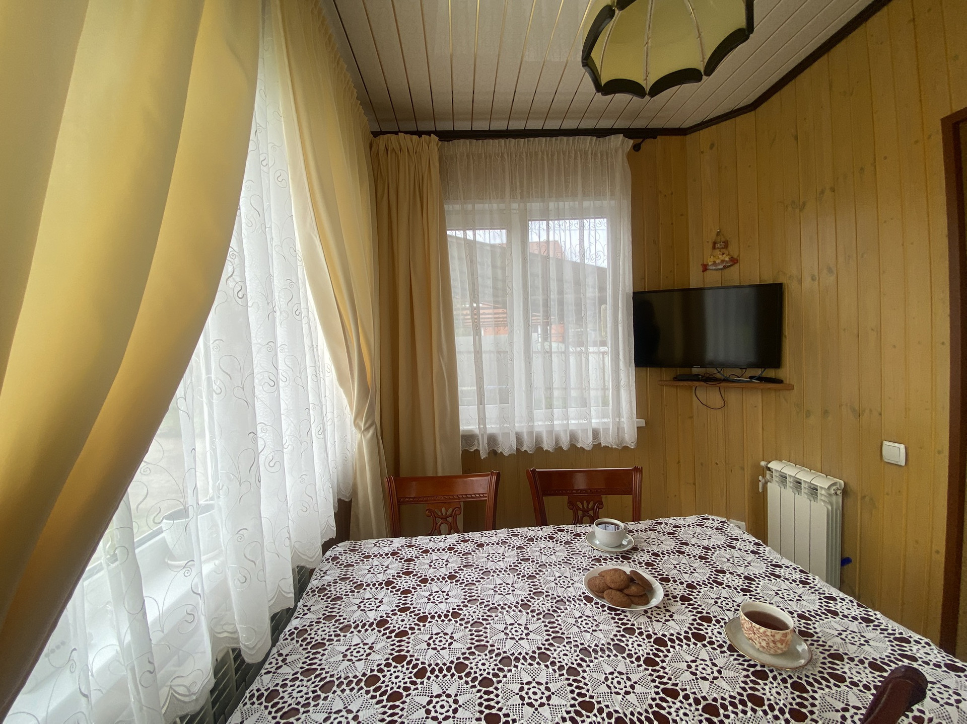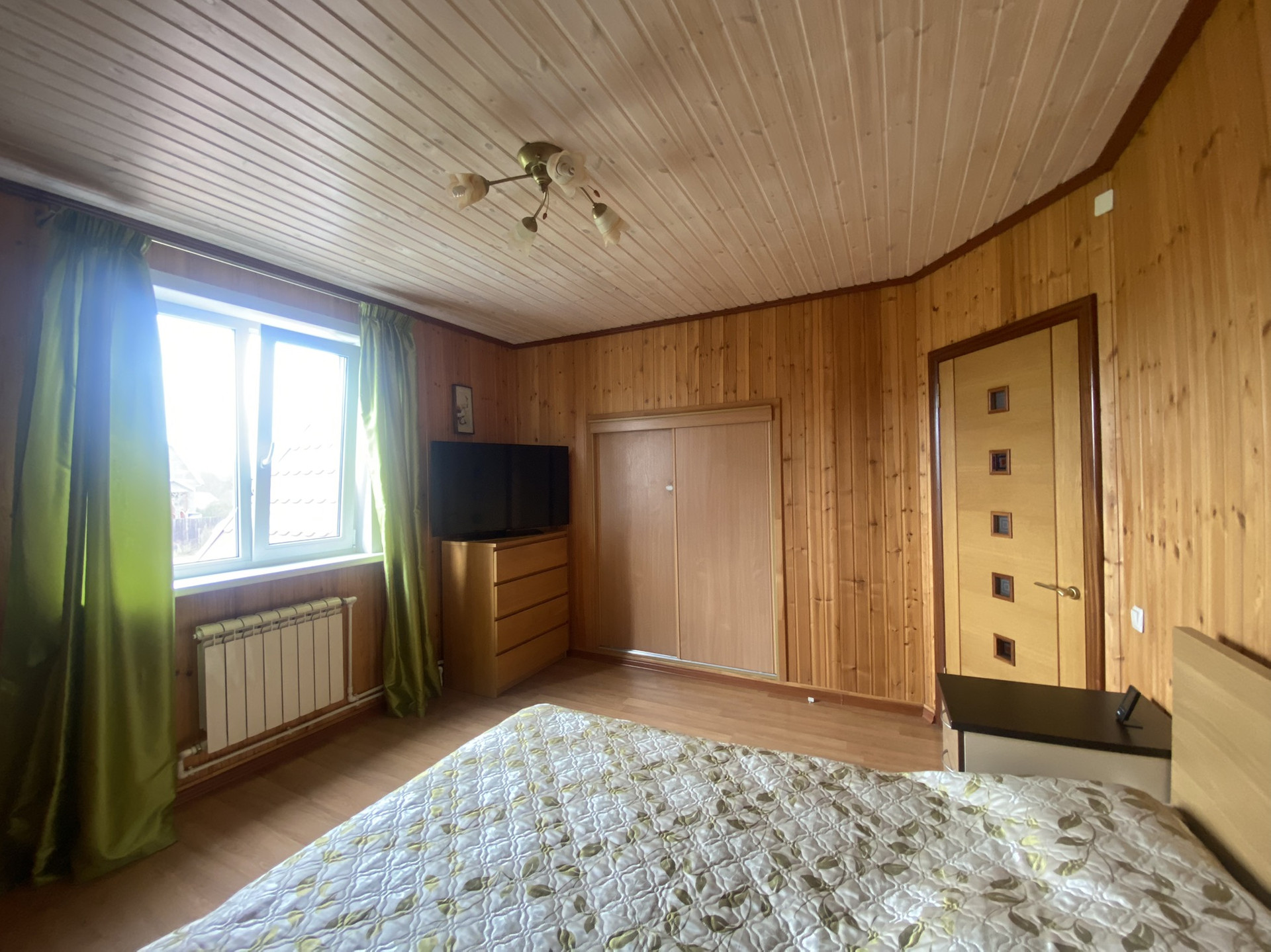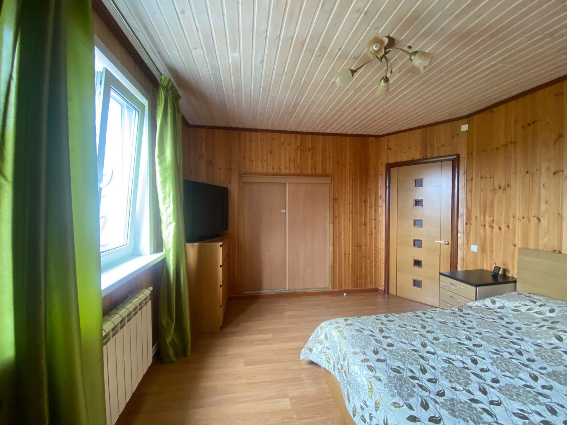 Стены 1 этаж - брус 200 на 200, 2 этаж - щитовой, но стены утеплены стены с внутреней и с внешней стороны!