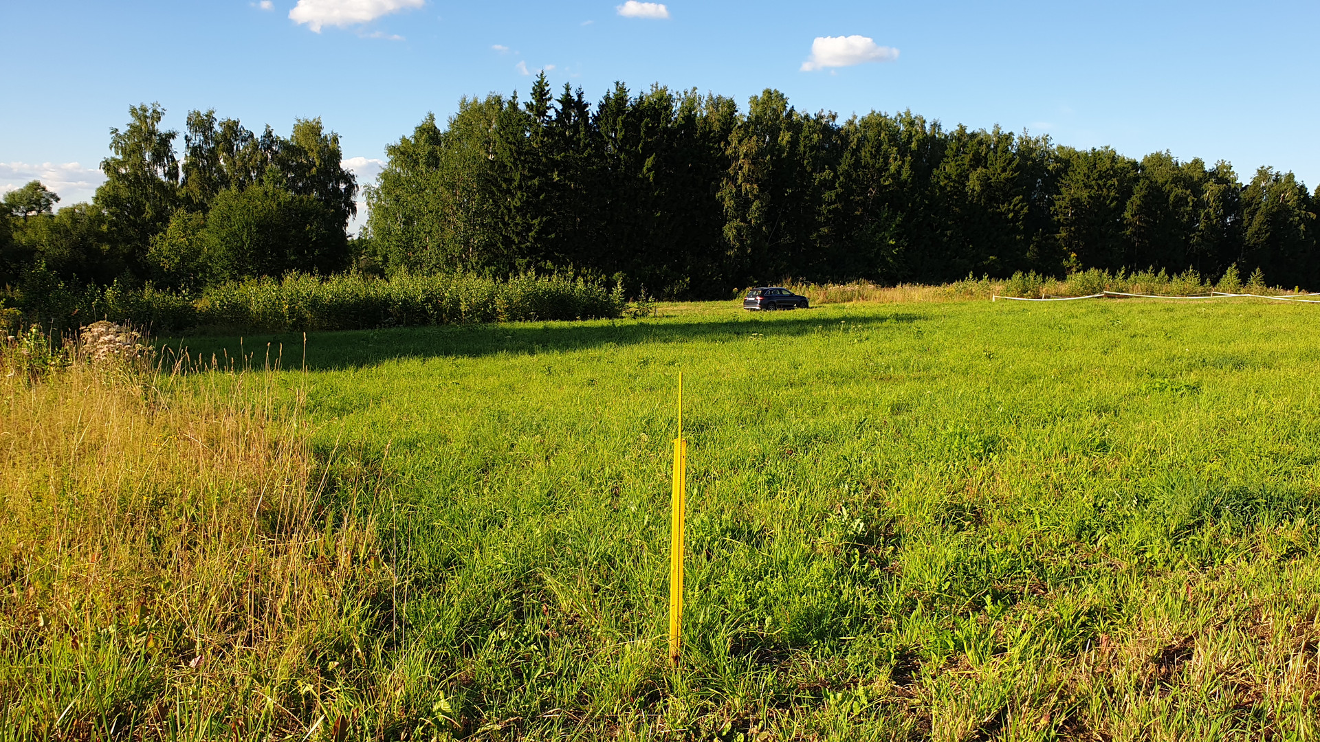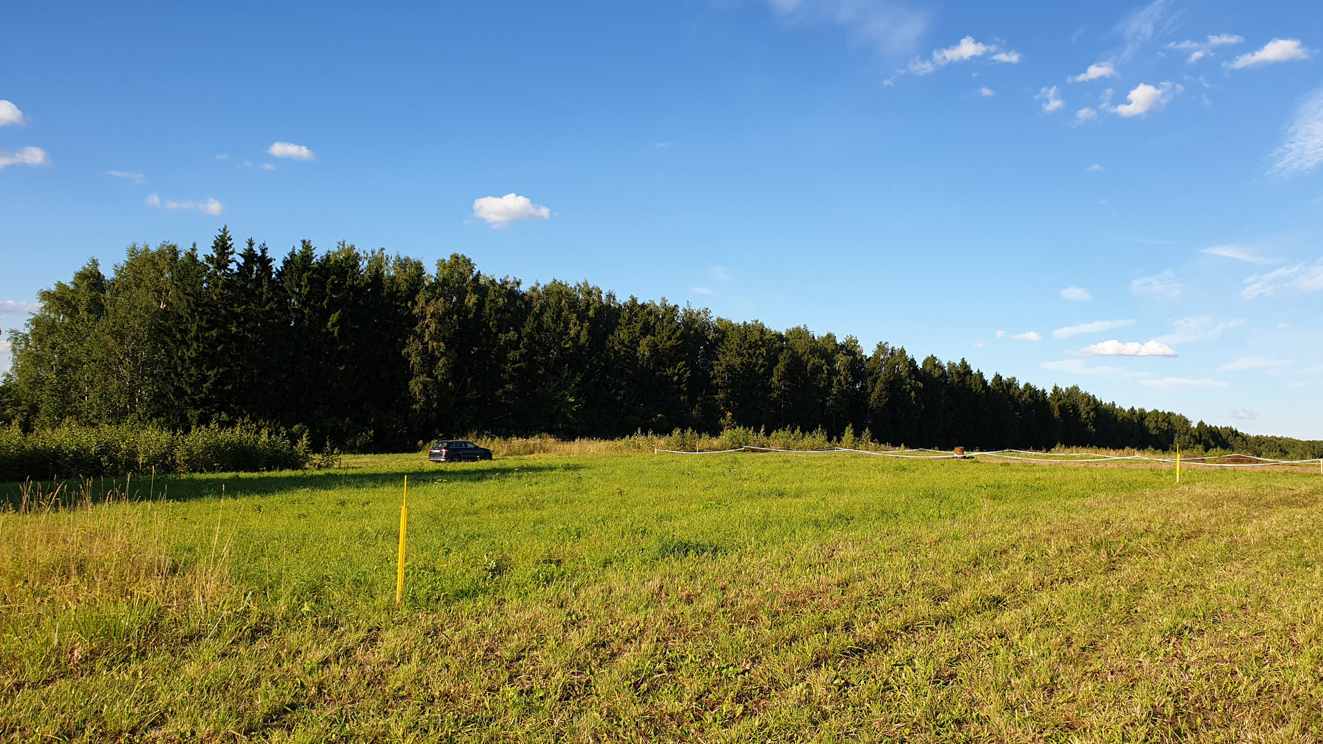Площадь – 1000 кв.м, правильная форма, ровный рельеф. Рядом съезд с дороги, непосредственно у въезда в деревню Матвеевское. При этом участок находится с края данного земельного кластера, со стороны деревни, что для меня являлось большим плюсом при выборе земли, т.к. минимум соседей, максимум спокойствия.