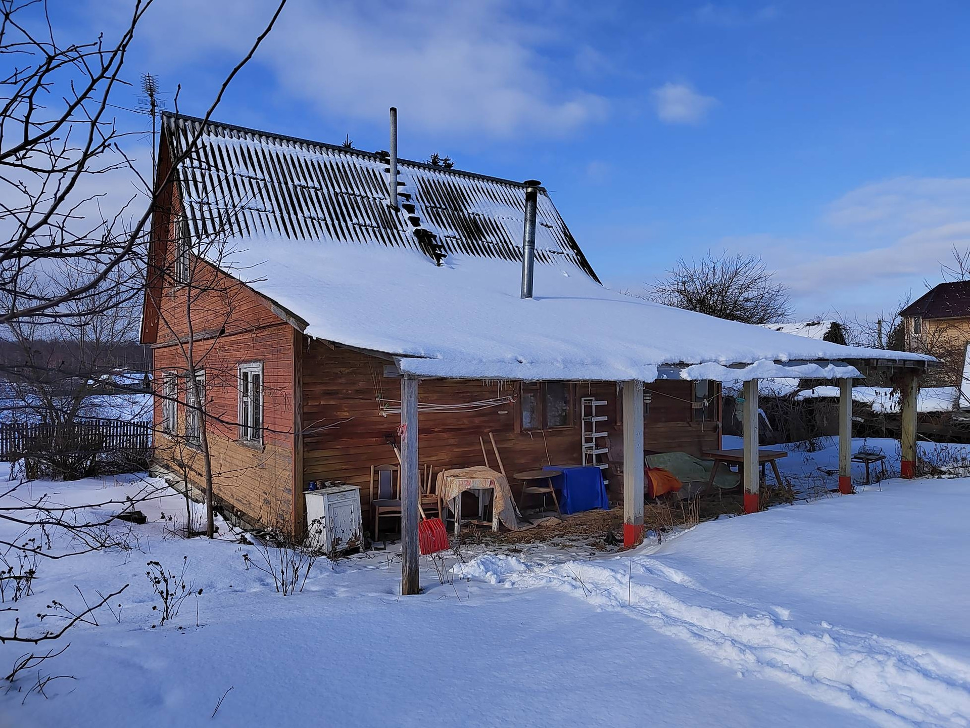 В доме четыре комнаты, терраса, совмещённый санузел.