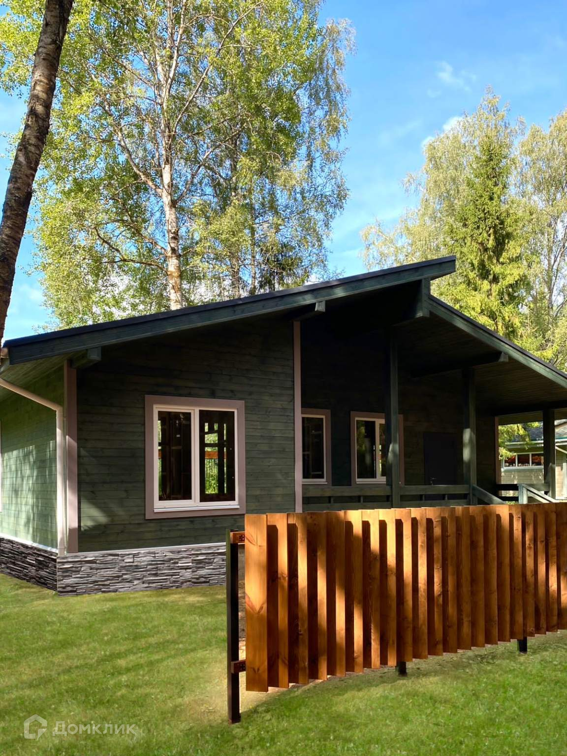 Новый коттедж в стиле Шале, расположенный на участке 7 соток, с возможностью расширения. Общая площадь 125 кв.м., панорамное остекление, второй свет, крыша-финская мягкая кровля «Katepal», окна «BrusBox», толщина стеклопакета-70 мм, 3-х камерный, фурнитура «Rotо», монолитный бетонный фундамент. Планировка 1 этаж: большая терраса под крышей, 2 крыльца, прихожая, топочная, кухня-гостиная со вторым светом, санузел, 3 спальни.