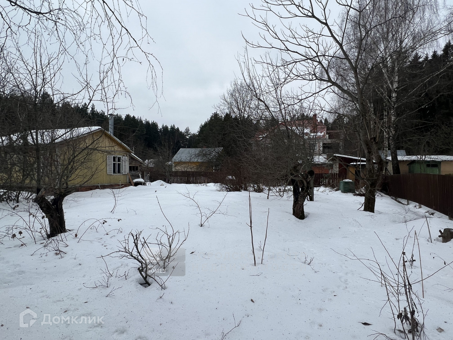 На участке растут лесные и плодовые деревья, кустарники. Участок ухожен, утопает в зелени.