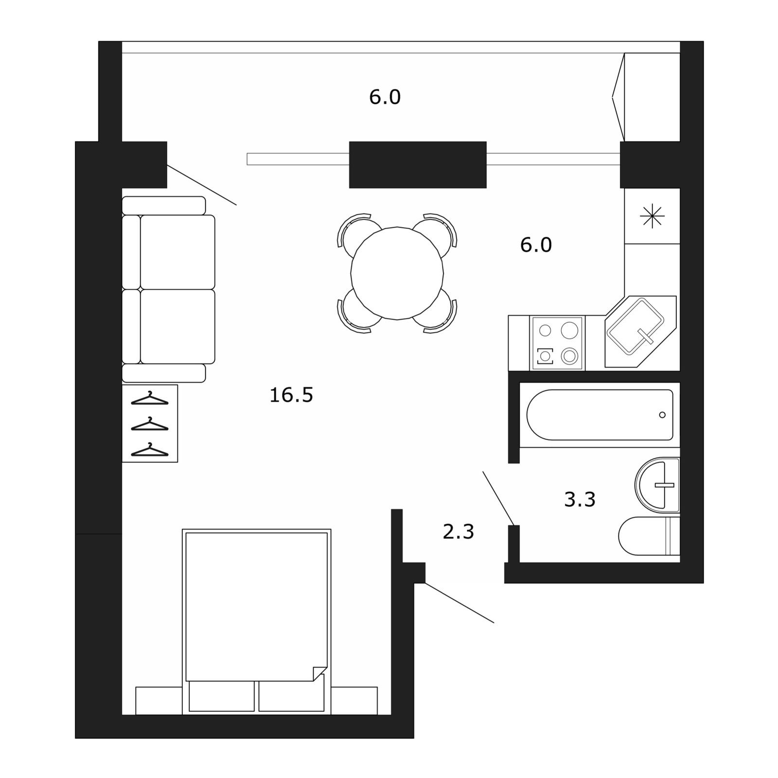 Общая площадь 30.9 м2