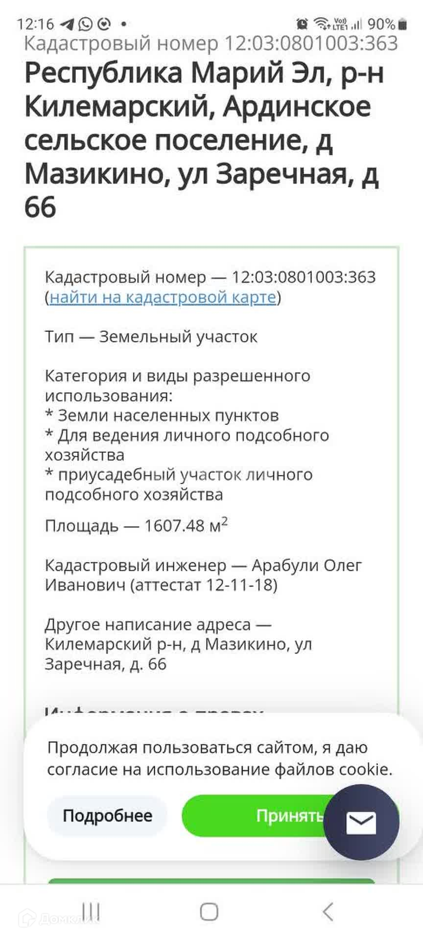 Номер в базе: 10944414. Район: Мазикино д..