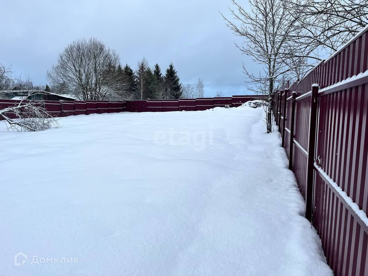 Участок. огорожен забором из металлопрофиля. На участке имеется кирпичный гараж, старые деревянные строения. Подведено электричество 15 кВт.