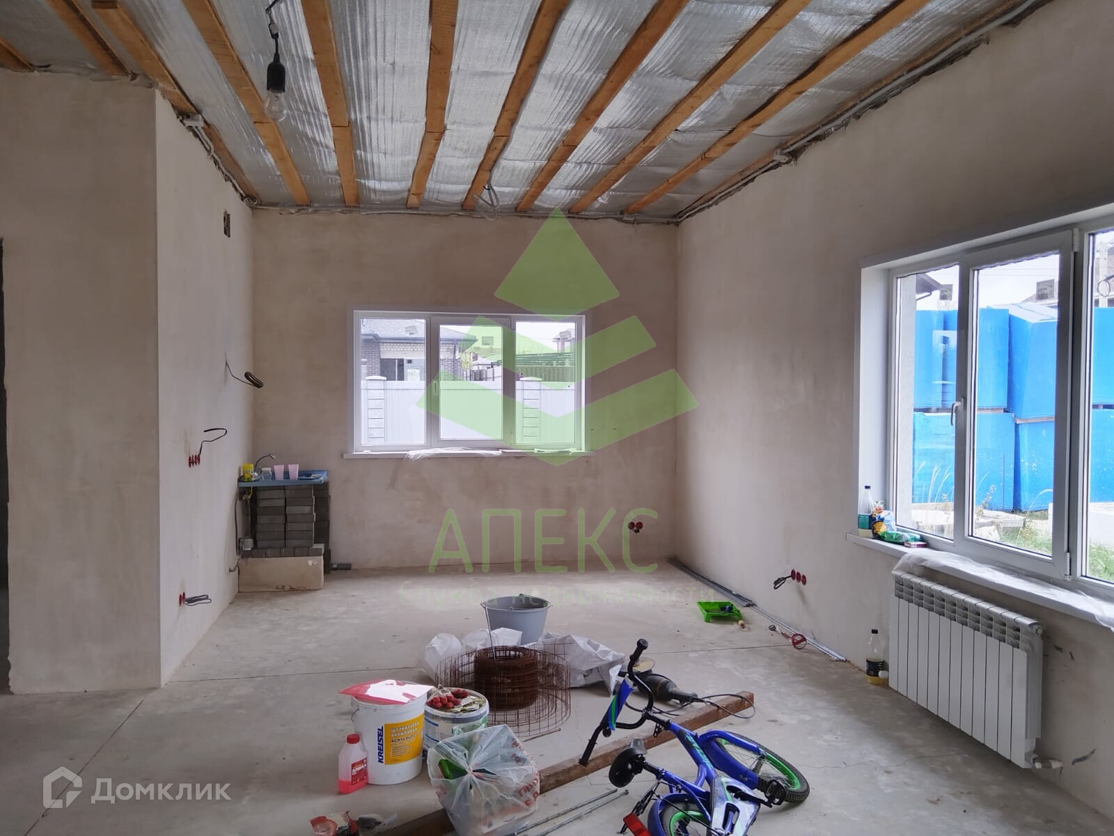 Продается дом с просторной планировкой. Дом выполнен из газосиликатного блока 300мм, утеплен и отштукатурен. Кровля-металлочерепица, окна (тройной стеклопакет), металлическая входная дверь. Подключен двухконтурный котёл, разведена регулируемая система водяного тёплого пола по всему дому. Все КОММУНИКАЦИИ в доме: - газоснабжение, канализация 3 кольца, электрика разведена, установлены биметаллические радиаторы. Стены оштукатурены.
