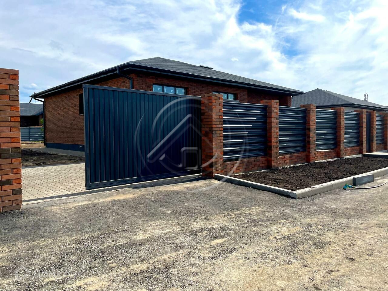Дом огорожен забором с автоматическими откатными воротами. Парковочное место. Участок выровнен и облагорожен.