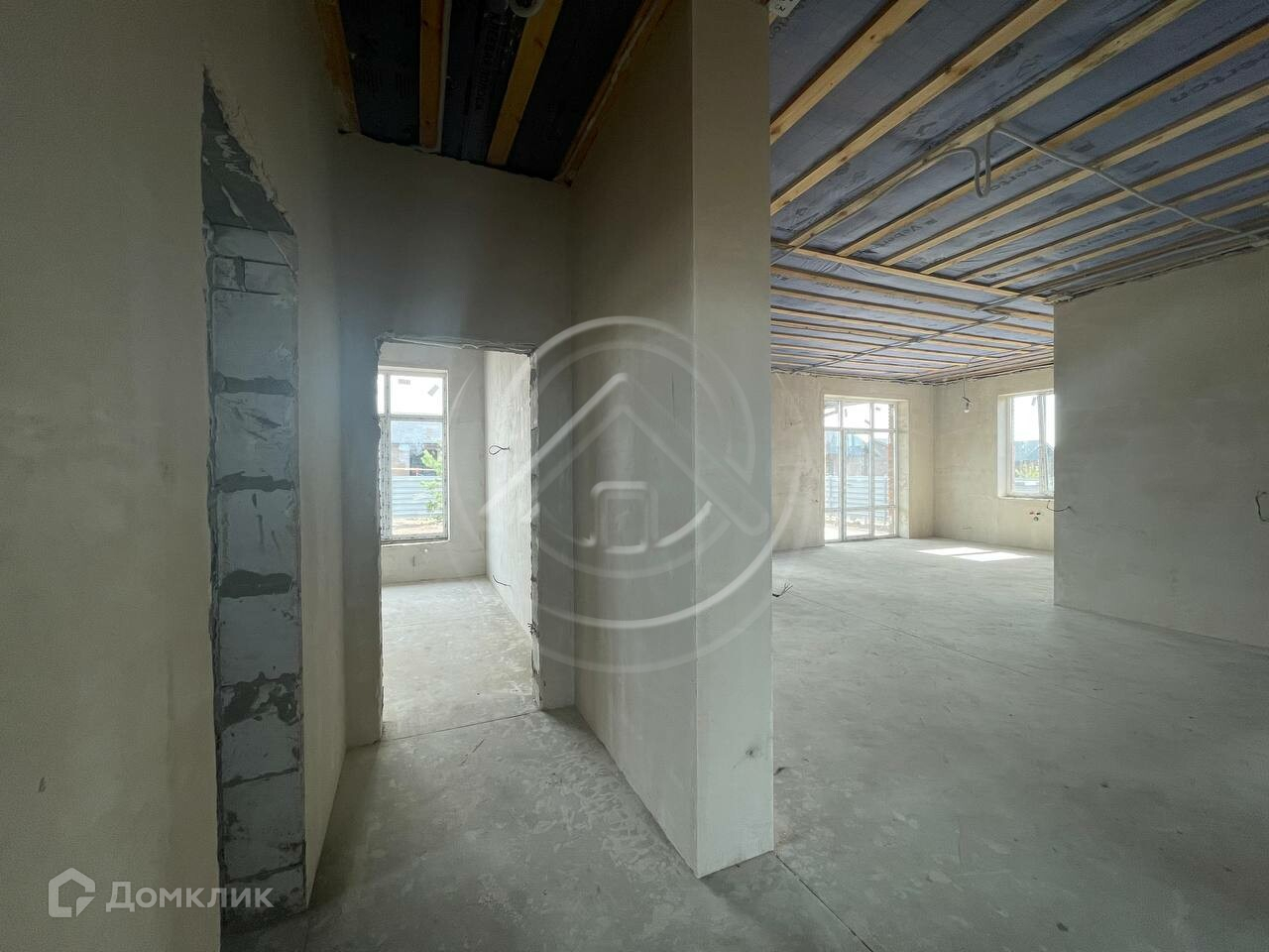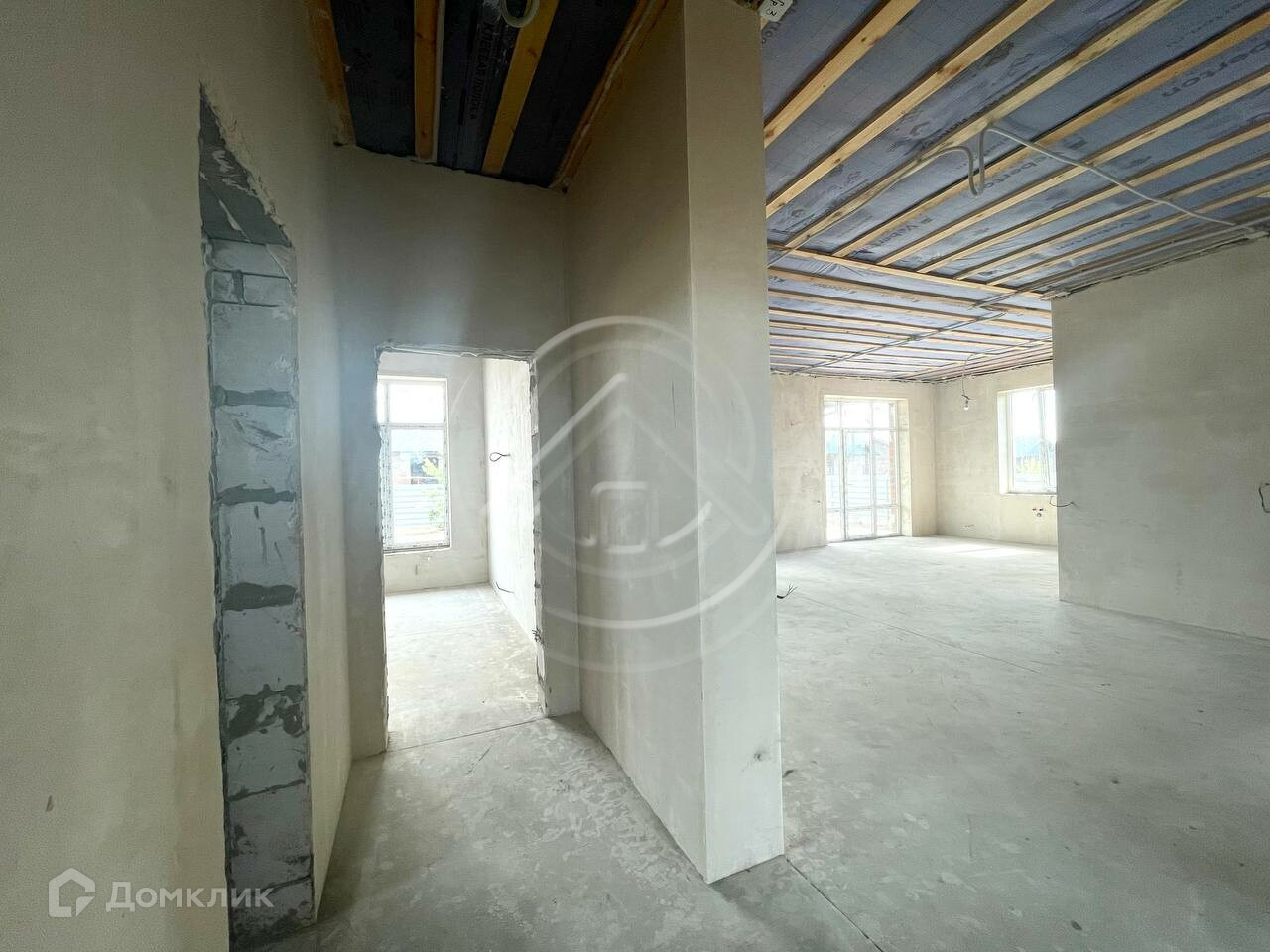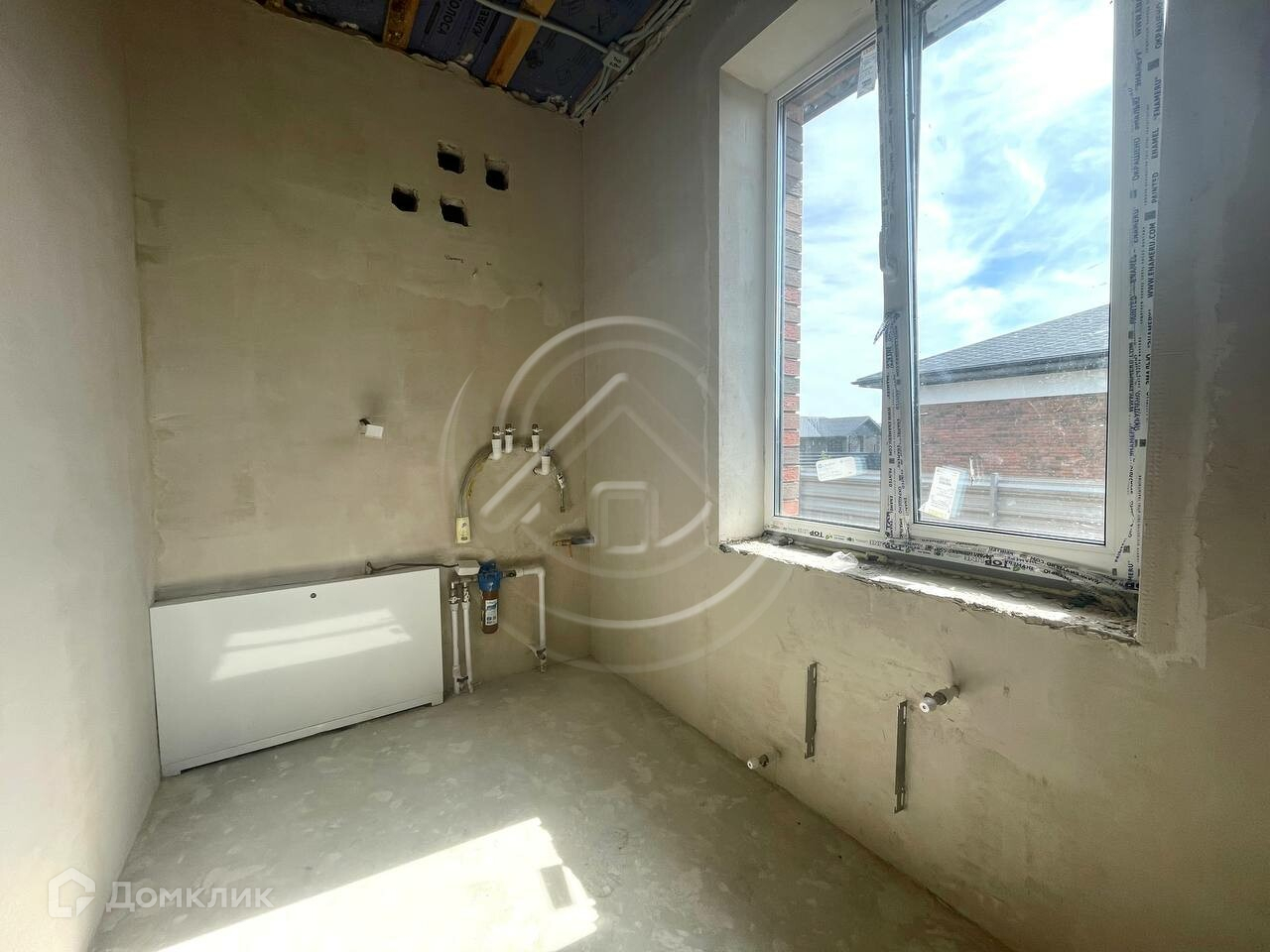 Внутренняя отделка: стены поштукатурены и зашпаклеваны, полусухая стяжка пола, разводка точек водоснабжения и канализации, система отопления теплый пол, разводка электричества по дому. Установлен двухконтурный котел.