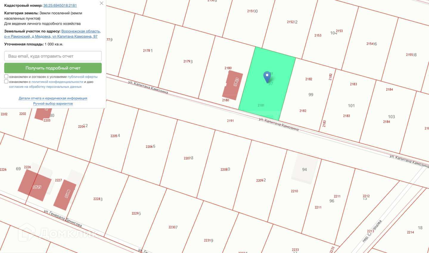 Участок под ИЖС, 10 сот. на продажу в деревне Медовке, улица Генерала Денисова, 14