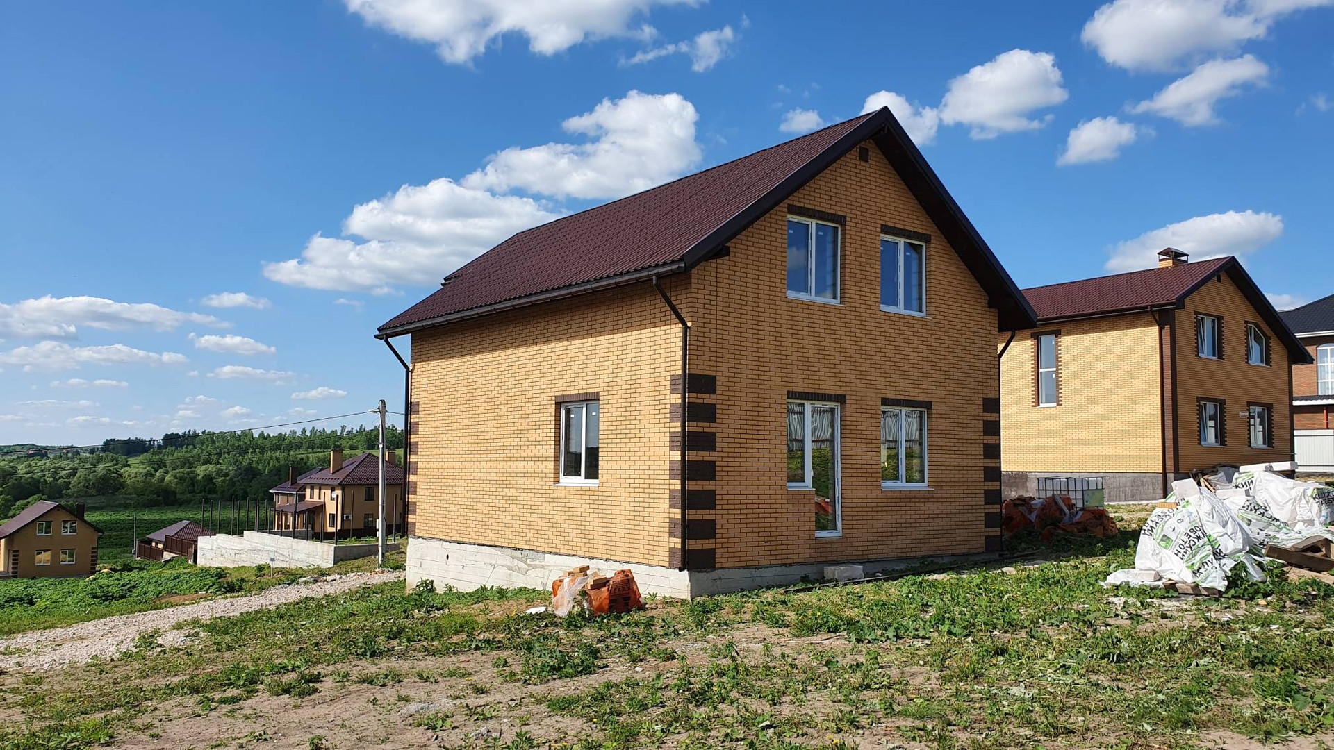 2. Материал стен- газосиликатный кирпич; 3. Утеплитель 6 см вин.вата: 4. Установлены качественные пластиковые окна с белым профилем с наружной стороны и увеличенные оконные проёмы; 5.Качественный облицовочный кирпич - торекс; 6.Установлены межкомнатные перегородки на первом этаже, второй этаж свободной планировки; 7. Коттедж полностью готов , ведутся работы по заведению коммуникации в дом, по завершению работ будет установлен котёл отопления!