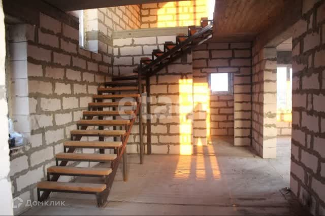 Установлен металлокаркас лестницы на второй этаж.