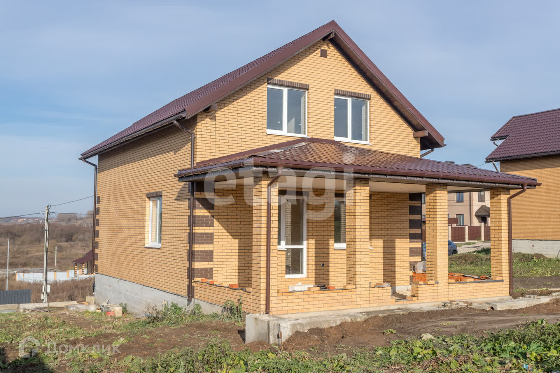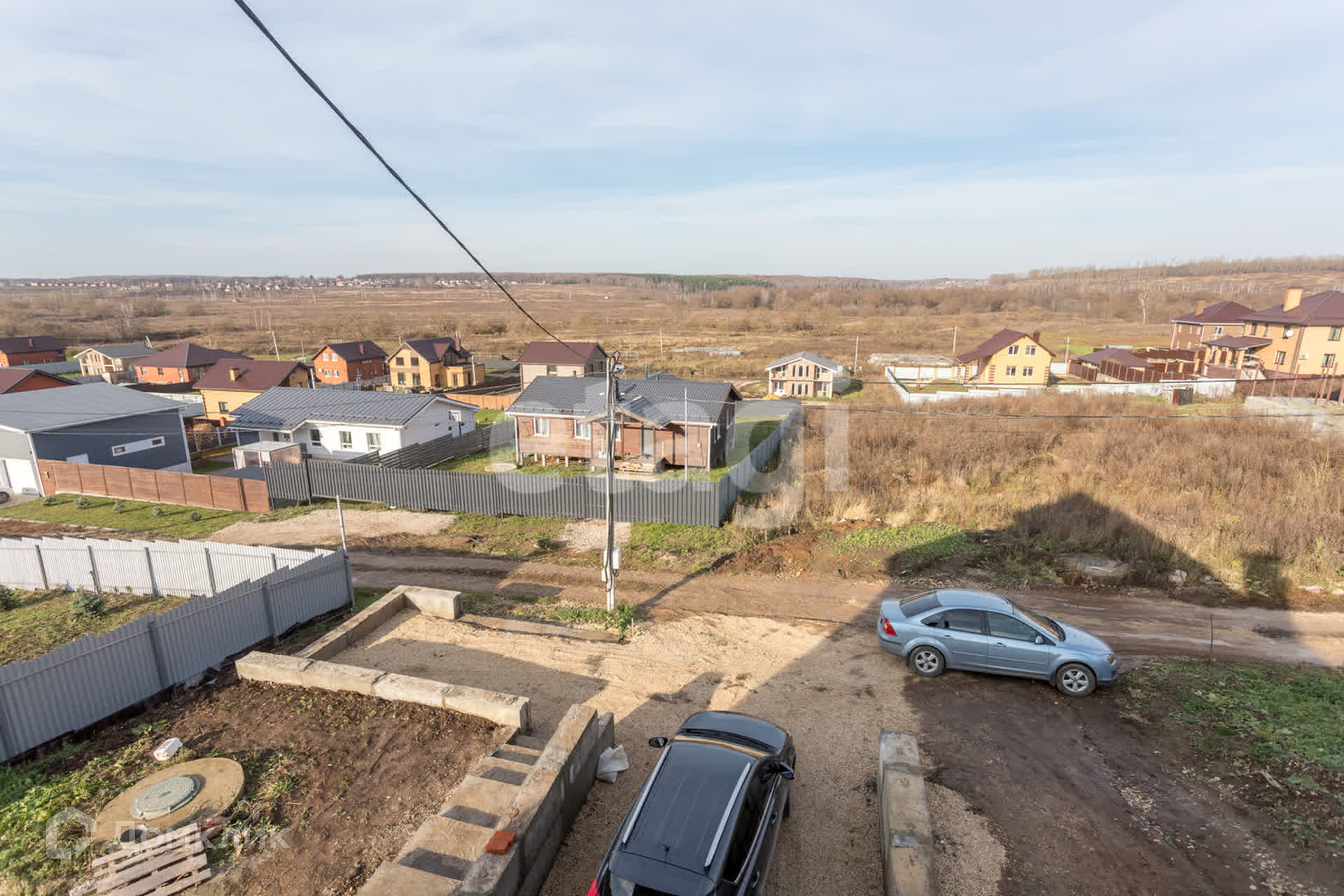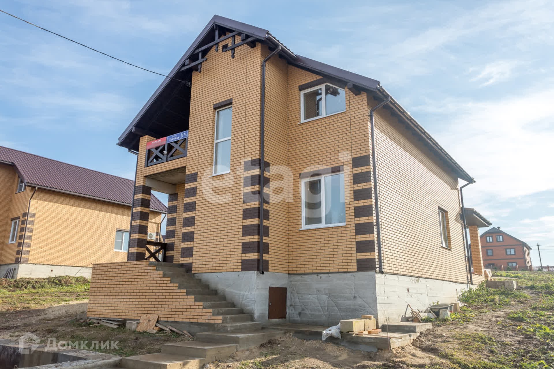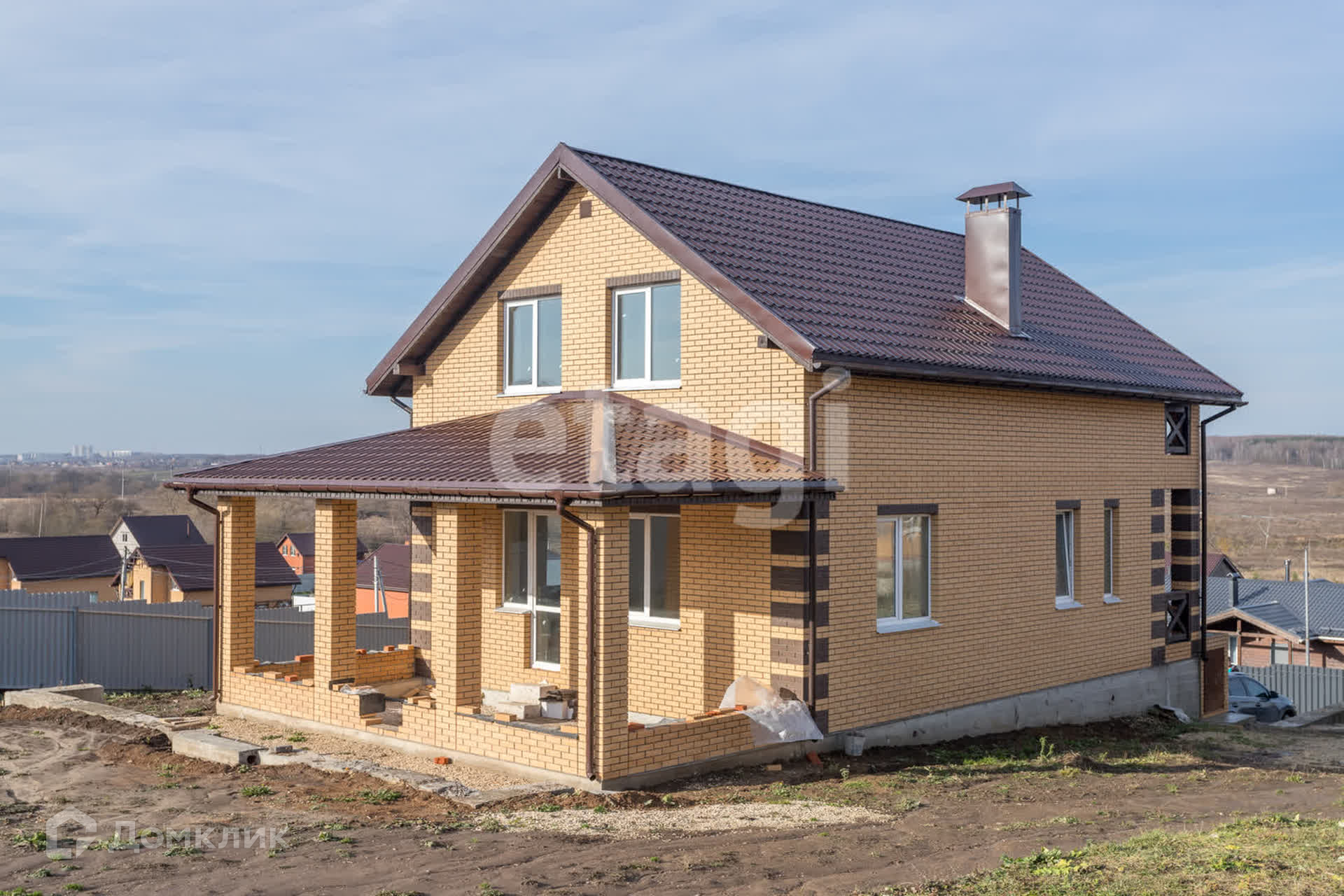 Имеются два входа для удобства, балкон на верхнем этаже и вместительная терраса на первом, с которой открывается вид на всю близлежащую местность. Газ на стадии проводки, мощности запущены.