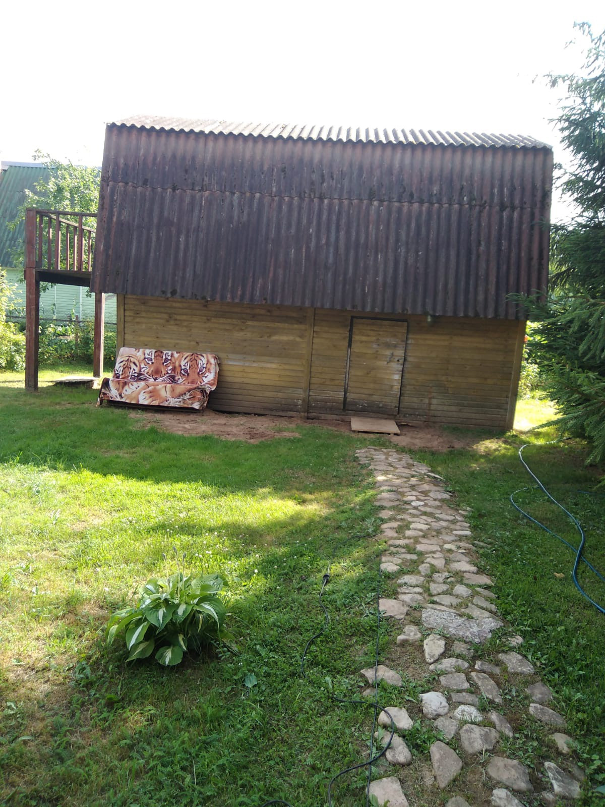На земельном участке 2-х этажный гостевой дом-баня площадью 36м2, разработанный участок, теплица из поликарбоната, колодец с питьевой водой, забор из профлиста высотой 2,2 м.