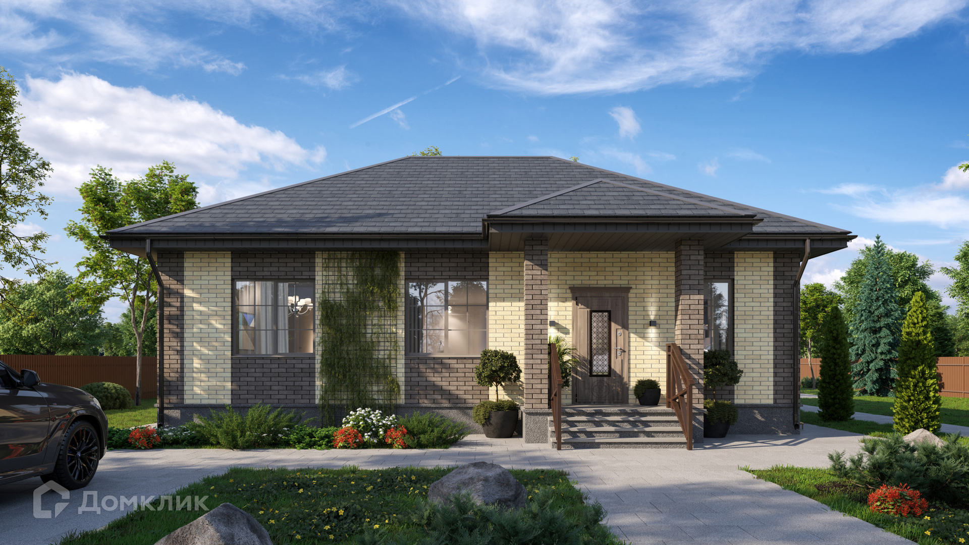 • Закрытая охраняемая территория с видеонаблюдением и красивой въездной группой.