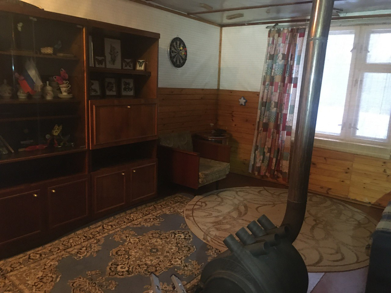Дом (первое фото, справа) сделан из брёвен, в нём имеется чердак и печка (булерьян). Стены обшиты вагонкой. А также подключено спутниковое телевидение. Имеется мебель: кухня, шкаф и два дивана. Зарегистрирован официально, имеется возможность прописки.
