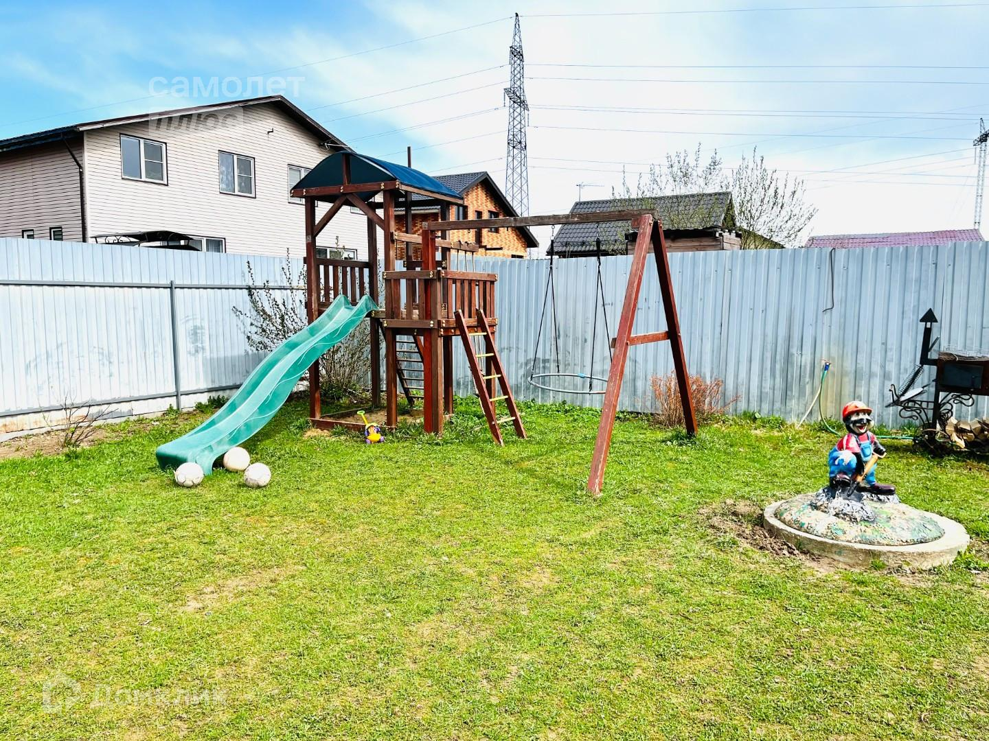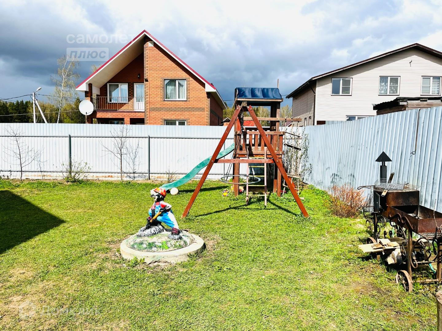 УЧАСТОК 9 соток: На участке расположен хлев для домашнего скота (6×12 м) с овощехранилищем и сеновалом с огороженной территорией для выгула кур. Хлев построен из газосиликатных блоков, за счёт этого в помещении всегда держится плюсовая температура, зимой — без обогрева. На территории участка предусмотрена зона отдыха с детской площадкой. На просторном газоне расположен игровой комплекс с горкой и качелями. У дома — небольшой палисадник. Два отдельных въезда, три парковочных места. Участок крайний на тупиковой улице. Прямо за домом — поле и лес. В 500 метрах от участка протекает река Истра.