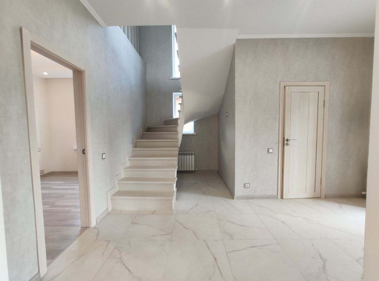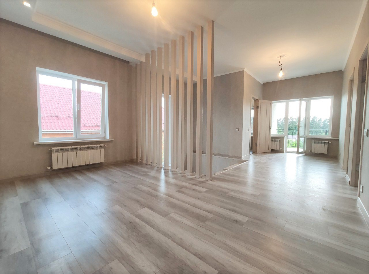 Городской округ Солнечногорск, д. Меленки, ул. Речная. Продается коттедж 155 кв.м., на земельном участке 6 соток, ЛПХ. Новый жилой 2-х этажный дом 2021 года постройки из газоблока, утеплен пеноплексом, отделанный фасадной декоративной штукатуркой короед, толщина стен 50 см, на глубоком свайно-ленточном фундаменте, окна пвх, межэтажная лестница монолитная отделана сосной, крыша металлочерепица, выполнен качественный дорогостоящий ремонт в светлых теплых тонах, на стенах фактурные обои, на полу плитка и паркетная доска, высокие разноуровневые потолки с декоративным освещением. На 1-этаже: котельная с отдельным входом с улицы, просторный коридор 15 кв.м., кухня - гостиная 35 кв.м., спальная комната 12 кв.м., санузел с душевой. На 2-этаже: просторный холл под зону отдыха, который при желании можно зонировать под спальную комнату, две изолированные cпальные комнаты - 17 и 15 кв.м., в каждой комнате есть выход на общий балкон с видом во двор, сан узел с ванной, еще один общий балкон с выходом в коридор с видом на улицу. Коммуникации: электричество 15 кВт, вода из скважины глубиной 30 м, канализация - септик из бетонных колец, магистральный газ проходит по границе участка, разведен по программе социальной газификации, можно подключаться. Котельная оснащена электрическим котлом, установлен водонагреватель, автоматическая система очистки воды. Отопление разведено и функционирует, по первому этажу установлен водяной теплый пол в коридоре, кухне-гостиной и санузле. Участок, ровный, сухой, правильной формы, ухожен, огорожен забором из профлиста и бетонных столбов с откатными воротами, к воротам подведено электричество есть возможность сделать автоматические ворота, тротуарной плиткой вымощена площадка под авто и придомовые дорожки. Круглогодичный асфальтированный подъезд. В деревне есть проводной высокоскоростной интернет. Истринское водохранилище в 300 метрах. В шаговой доступности автобусная остановка и продуктовые магазины, есть детская площадка, магазины со всем необходимым, также есть пункт выдачи Оzon. VB, 10 минут на машине до г. Солнечногорск. В соседней деревне Кривцово есть вся необходимая инфраструктура. Дом оформлен, участок в соб-ти более 10 лет, 1 соб-к. Свободная продажа. Подходит под ипотеку.