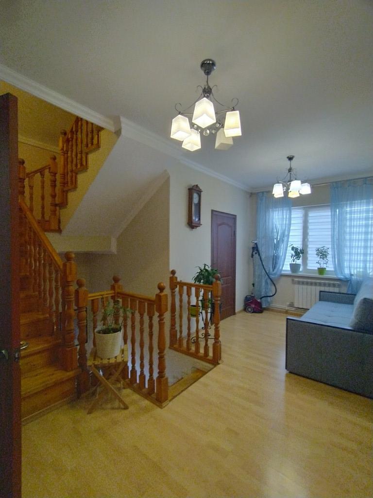 Московская область, городской округ Солнечногорск, деревня Меленки. Продаю 3-х этажный дом 207,7 кв.м. с участком 6 соток по Пятницкому шоссе 43 км от МКАД. Участок ровный, правильной формы, огорожен забором из профлиста, распашные ворота, калитка. Дом из газосиликатных блоков, утеплен, снаружи кирпич, ленточный фундамент, крыша металлочерепица, бетонная отмостка вокруг дома. На первом этаже котельная, кухня-гостиная (41,9 кв.м.), комната (11,4 кв.м.), санузел с душевой кабиной. На втором этаже - 3 комнаты (17,3/18,9/23 кв.м.), санузел с ванной. На третьем этаже мансарда (47,8 кв.м.). Коммуникации заведены в дом: электричество 15 кВт, водопровод - скважина, канализация септик, отопление дизельный котел. В доме пластиковые стеклопакеты, теплый пол на первом этаже и на втором в санузле. На участке хоз. постройка, плодовые деревья, теплица, бетонная площадка для автомобиля. Есть возможность подключения к газу по гос. программе. Подъезд асфальтированная крошка. Полностью жилой и обустроенный дом, частично остается мебель. В шаговой доступности продуктовый и строительный магазины, недалеко автобусная остановка. До ж/д и автовокзала 15 минут на транспорте. Один взрослый собственник, дом зарегистрирован, присвоен адрес. Возможно оформление ипотеки.