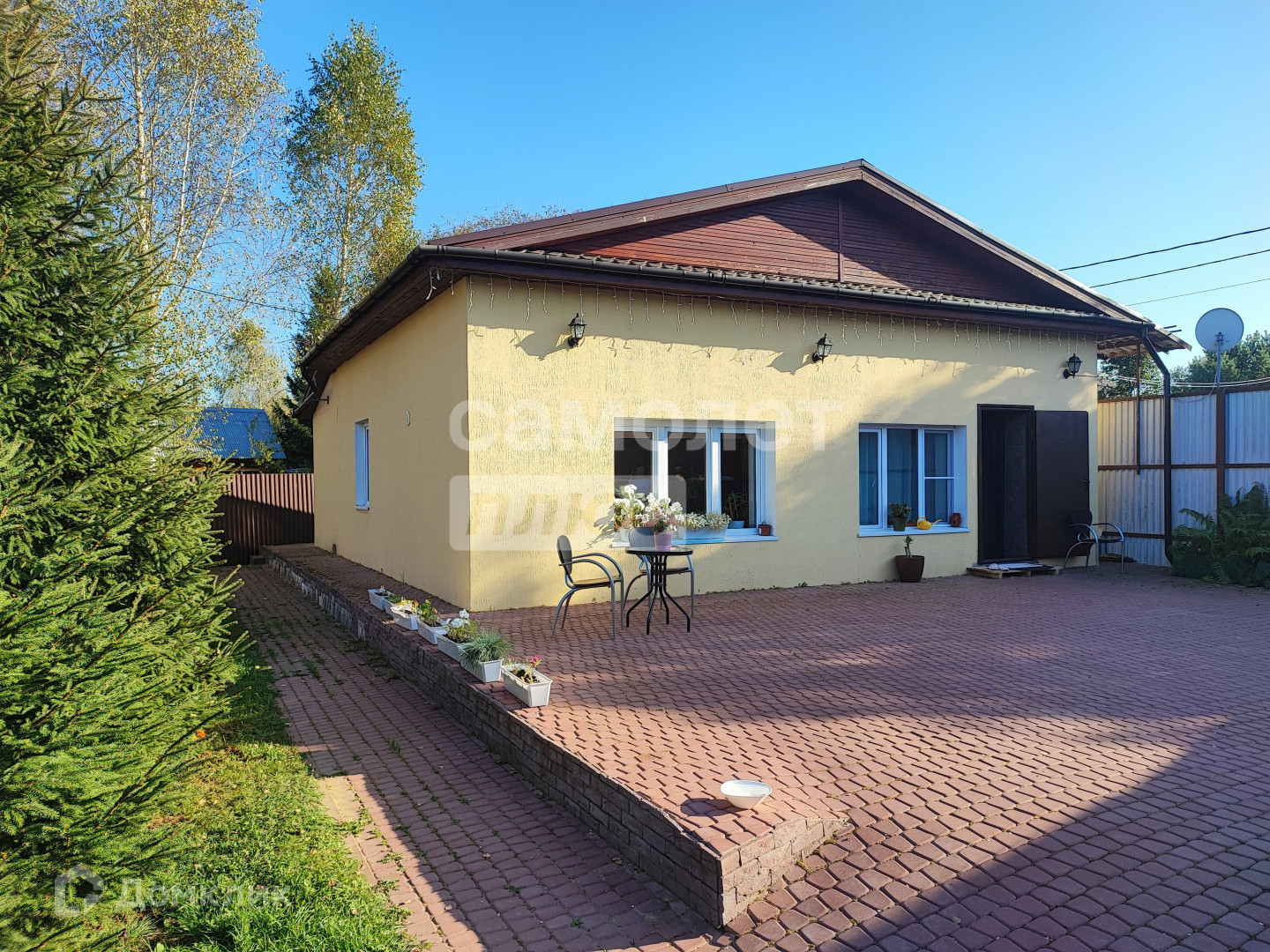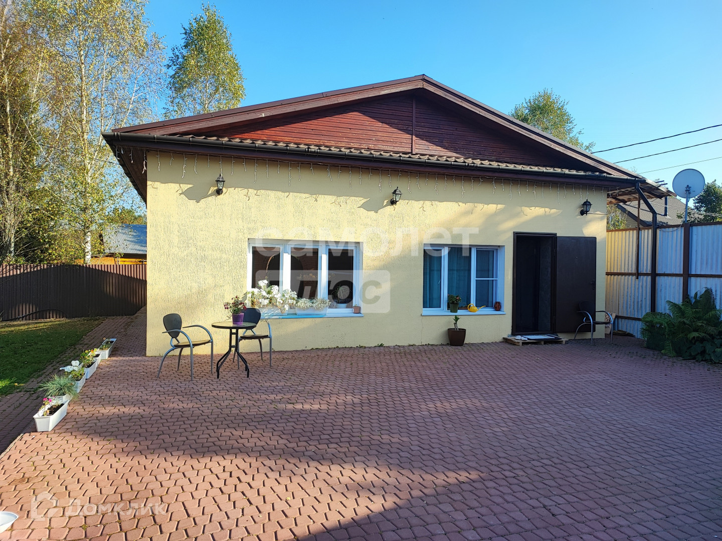 - Гостевой дом (100 кв.м., 1 этаж, пеноблоки, отдельный септик, отопление - электричество и камин): кухня-гостиная с камином; 1 спальня, 1 санузел, кладовая; высота потолков 2.7м. Участок: 20 соток; по периметру металлический забор; площадки и дорожки, выложенные брусчаткой и плиткой; бОльшая часть - газоны/лужайки, 9-летние деревья (груши, яблони) и кустарники (смородина, крыжовник, жимолость); розы; есть фундамент под баню 4х3м; хозблок для хранения садовых инструментов и пр. Электричество: 30кВт. Газ: сейчас идут работы по подключению газа в деревне. Дом уже включён в план и нанесён на схему подключения.