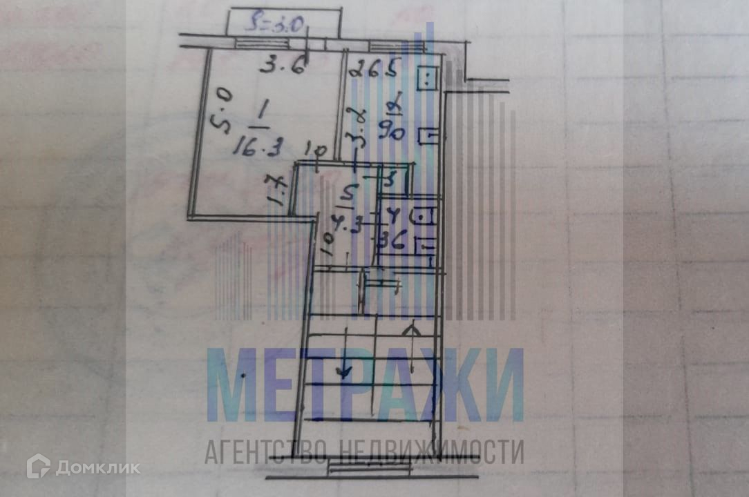 Жилая площадь 16.3 м2