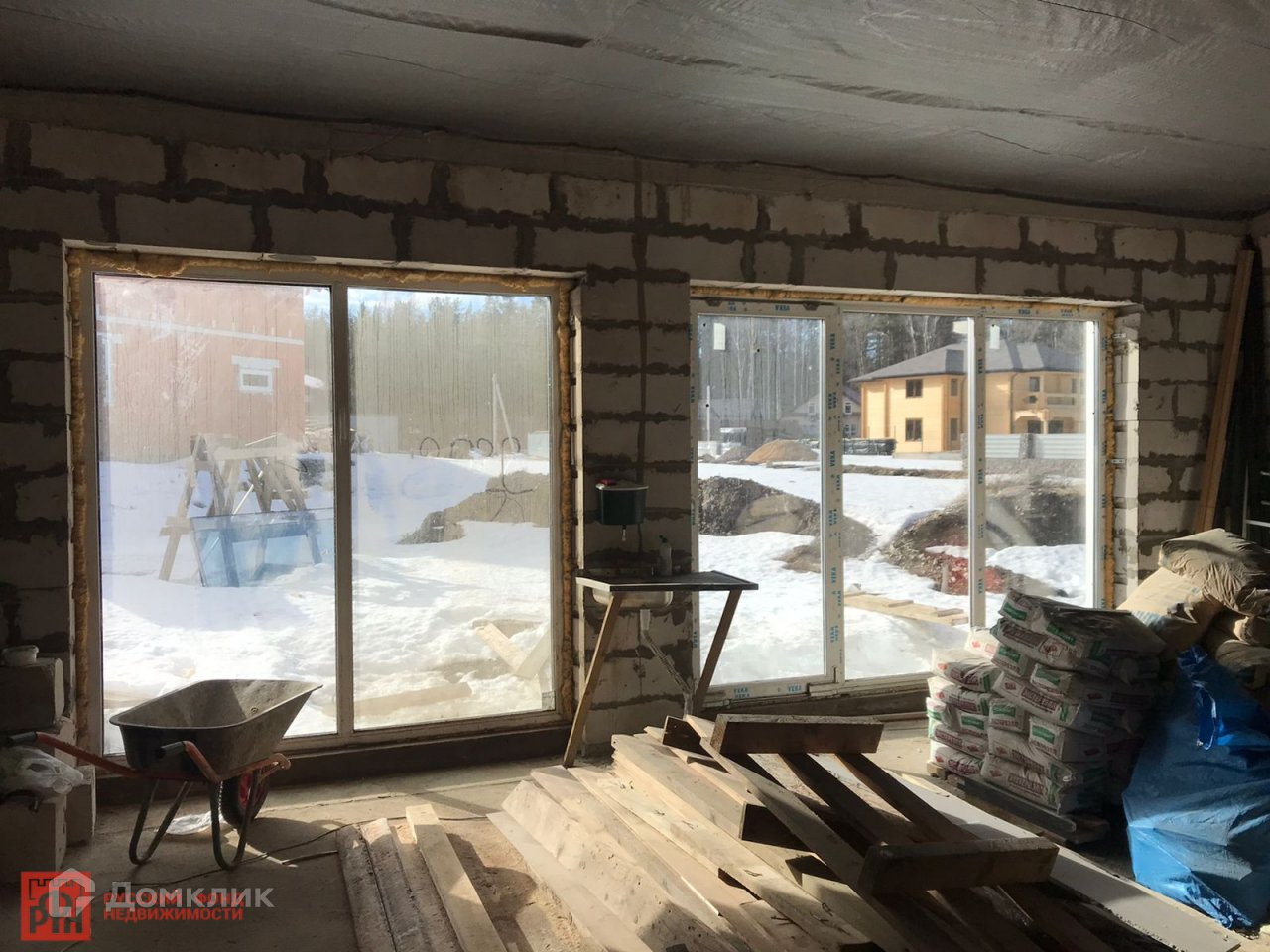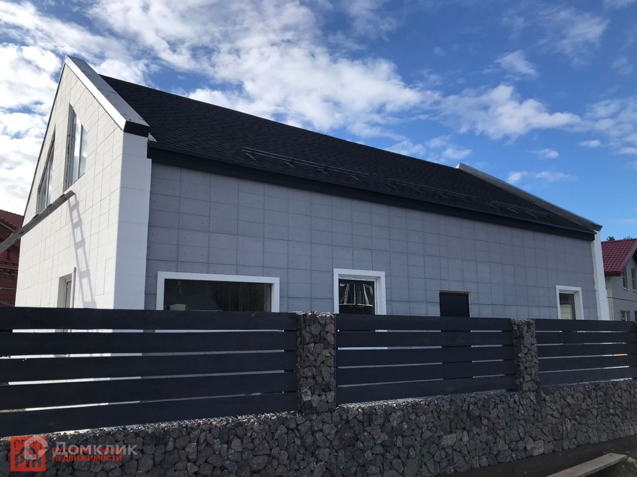 На данный момент готовность дома составляет 80%. Фундамент - монолитная плита 300мм., стены - г/б 300 мм. с утеплением 100 мм. и вентфасадом, крыша - утепление 300 мм.
