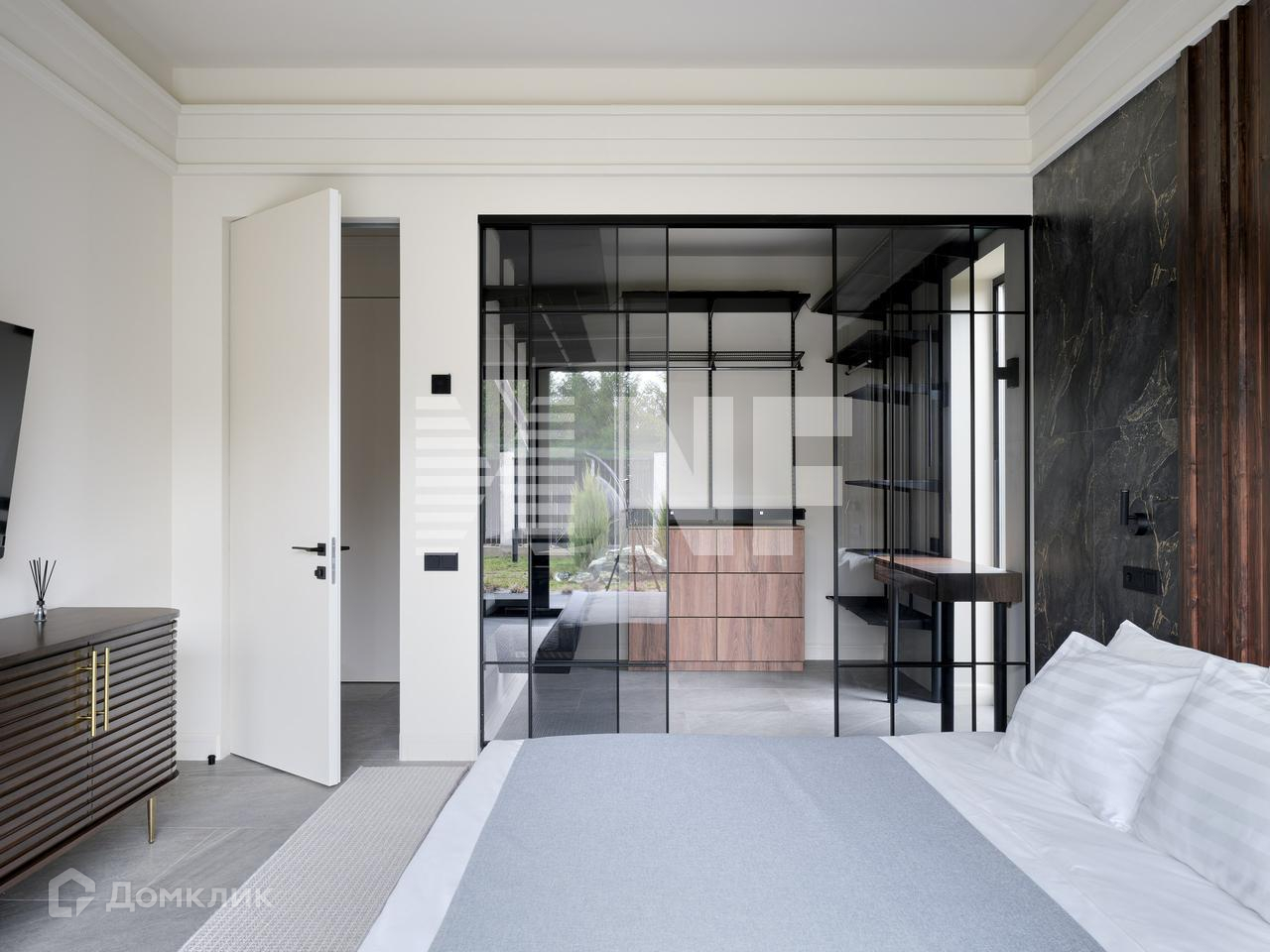 Основная просторная мастер спальня с гардеробной и ванной комнатой с сауной, оборудованой финской печью HARVIA, разогрев за считанные минуты.